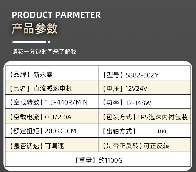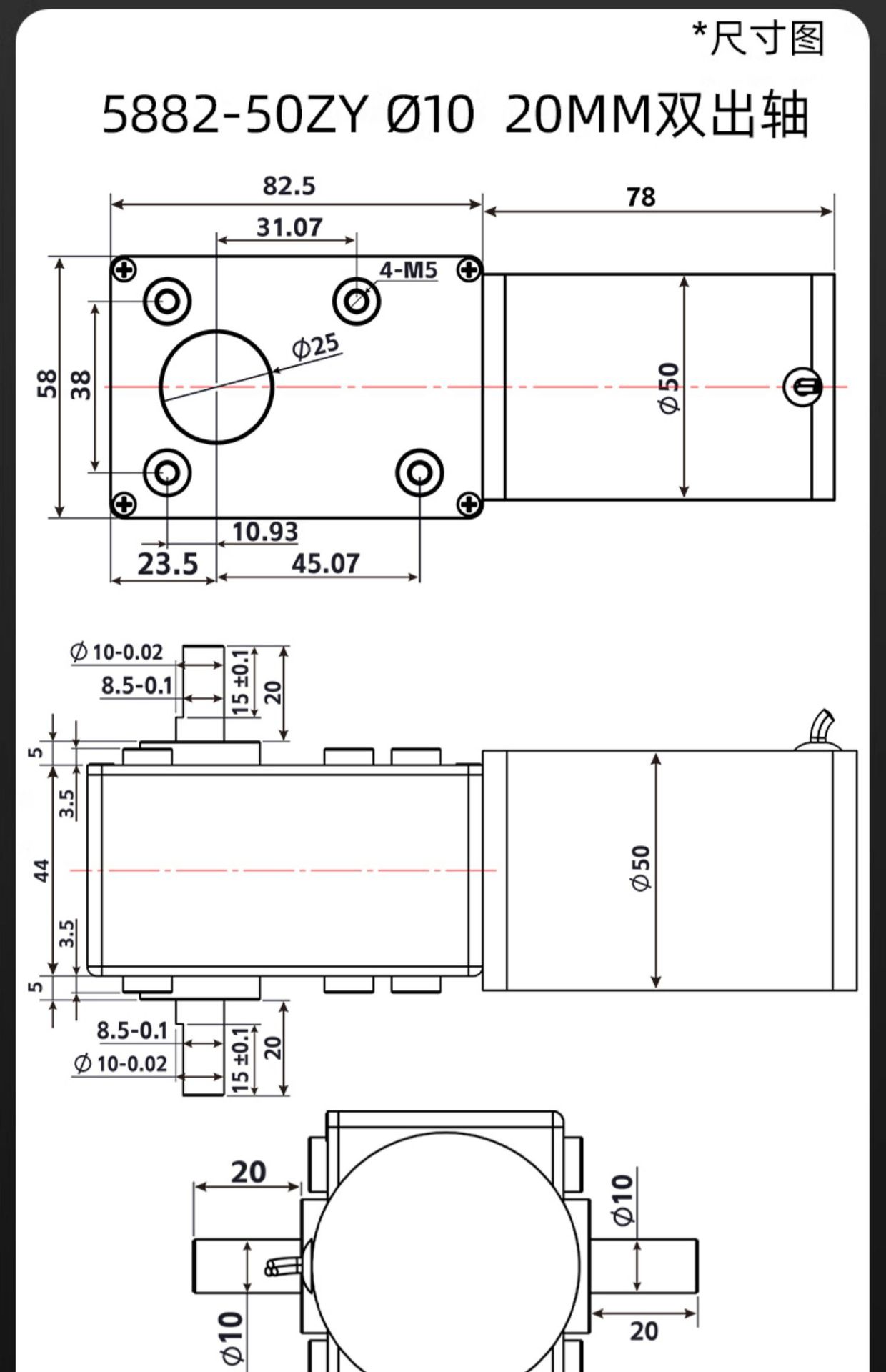 5882-50ZY 터빈 웜 DC 기어 모터 높은 토크 저속 모터 12V 24V