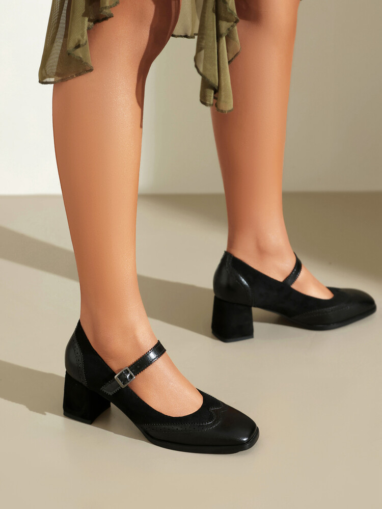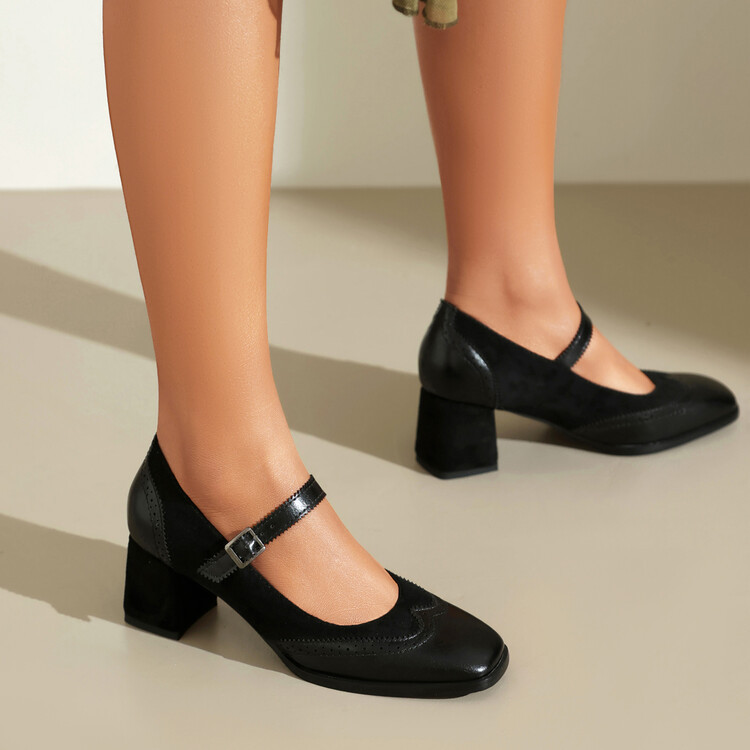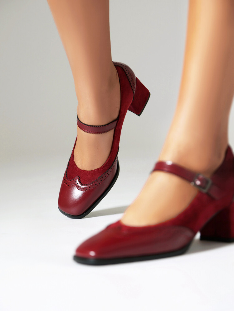 패션 하이힐 신발 불타는 꽃 버건디 블랙 라운드 헤드 주문 여성 단순