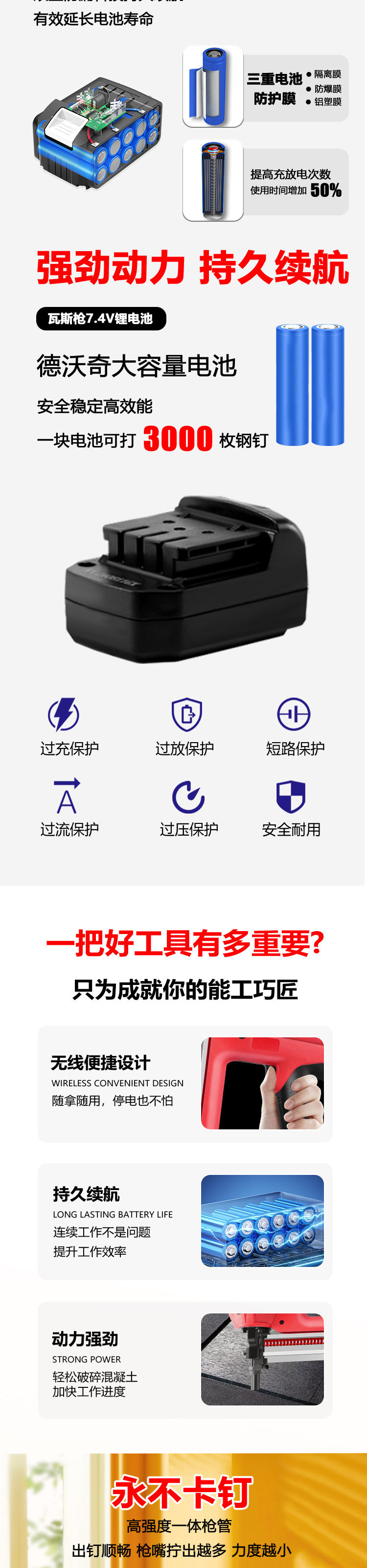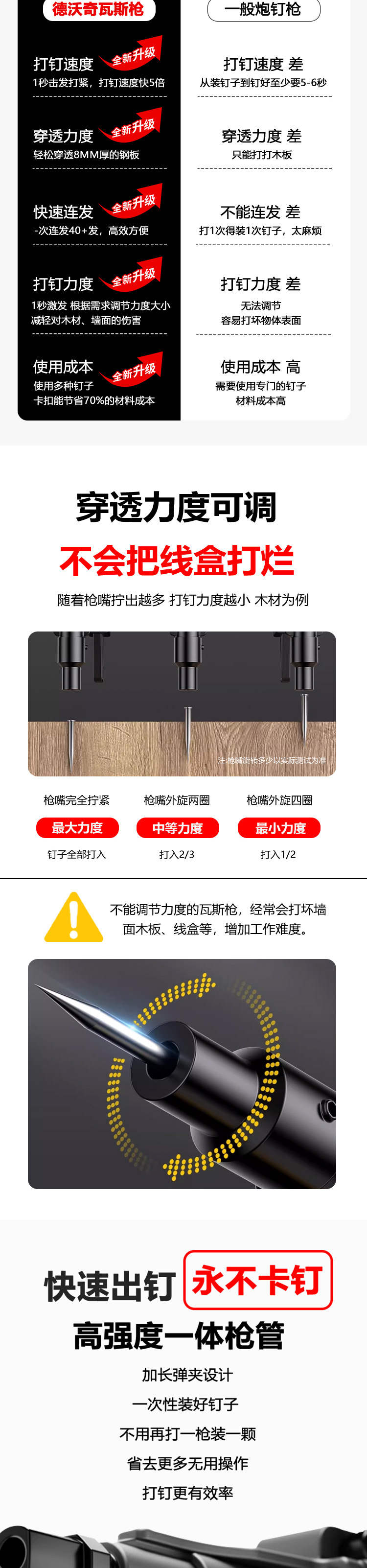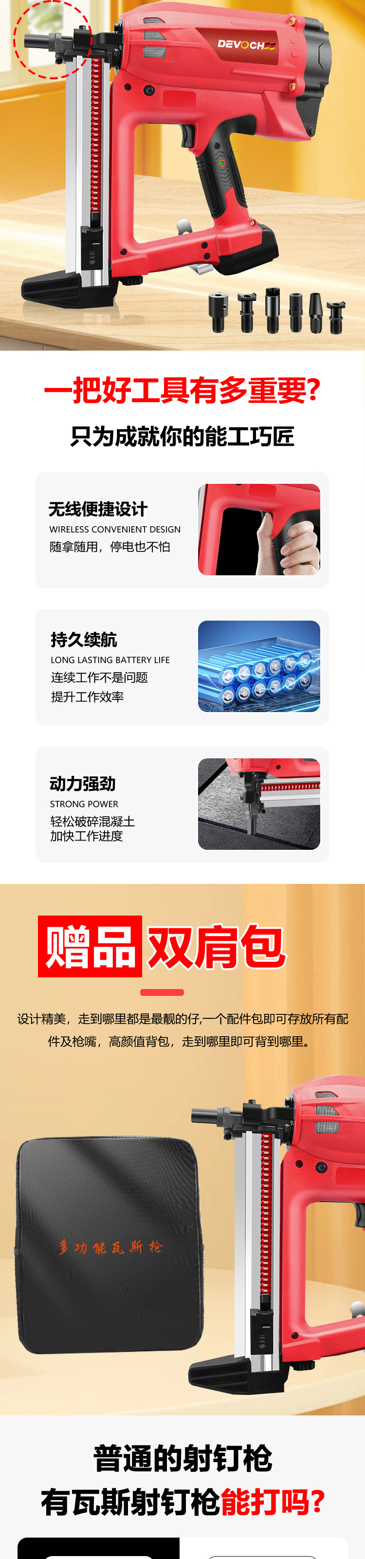 DEVOCHEE 가스 건 스틸 네일 슈팅 건 장식 수, 전기 및 목공 멀티 건 노즐 리튬 전기 네일 건 효율적인 건설