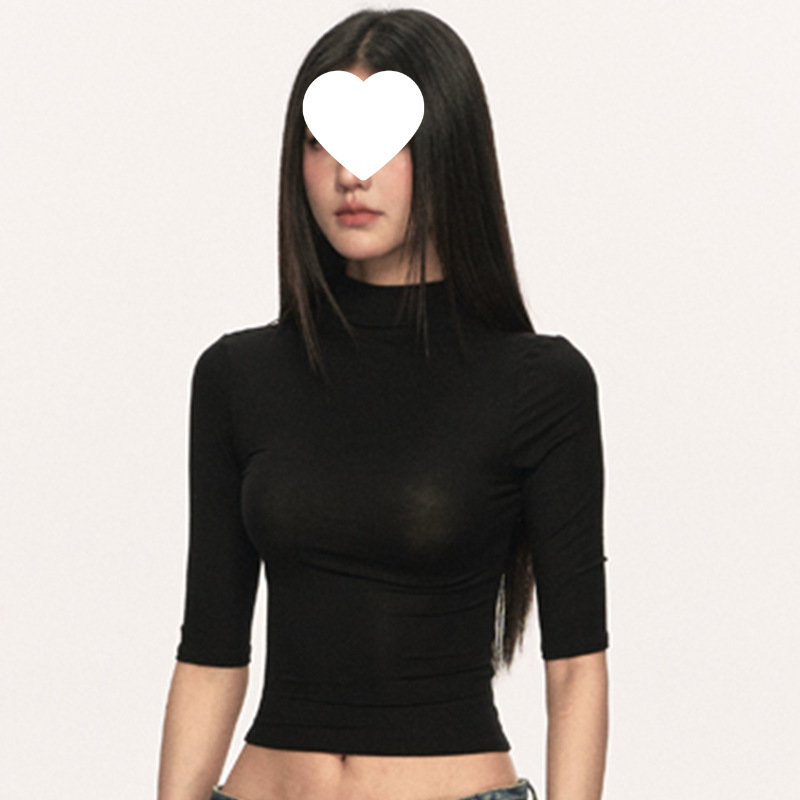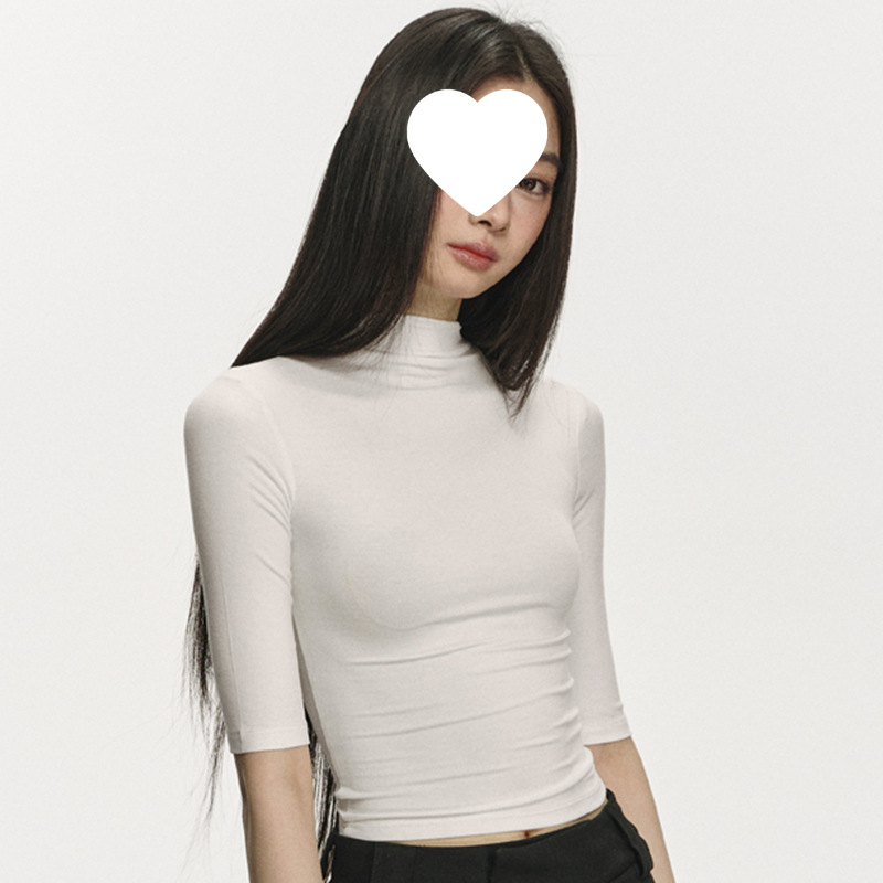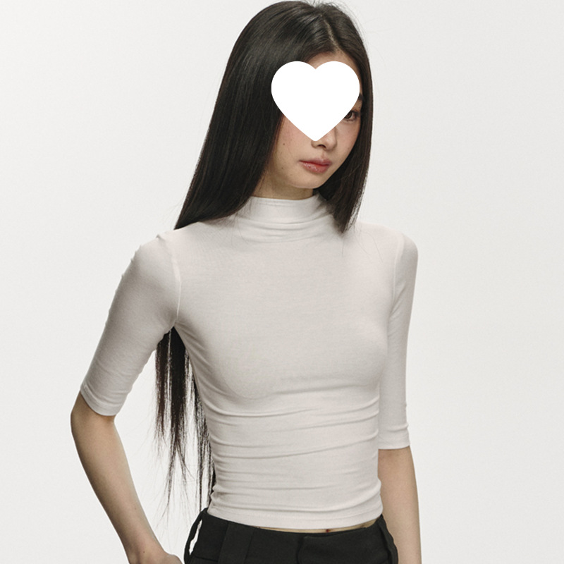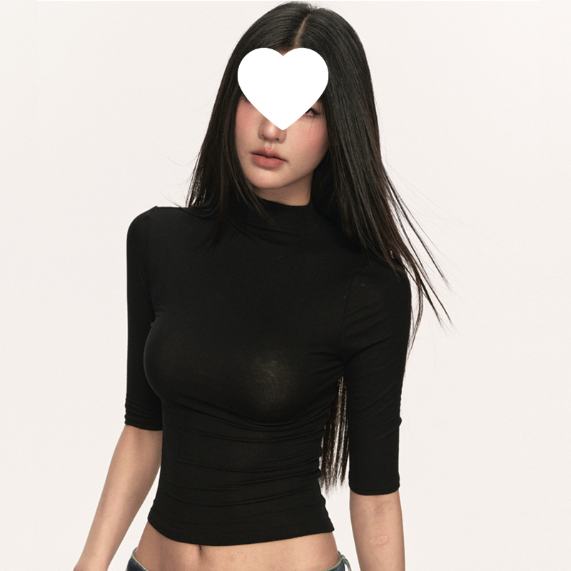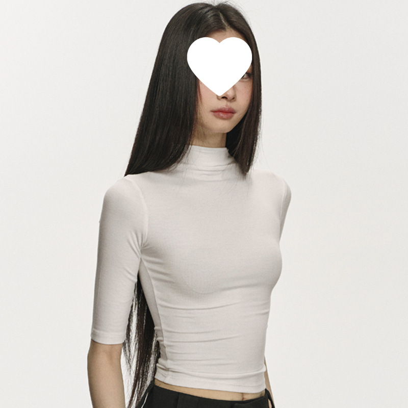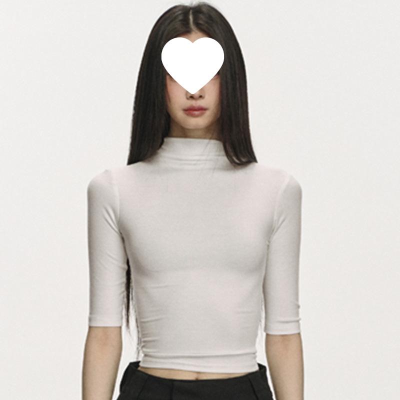 여름 새로운 퓨어 스파이스 걸 쇼트 코튼 5 점 반팔 티셔츠 여성용 슬림핏 슬리밍 올매치 디자인 센스 탑스토어 가기