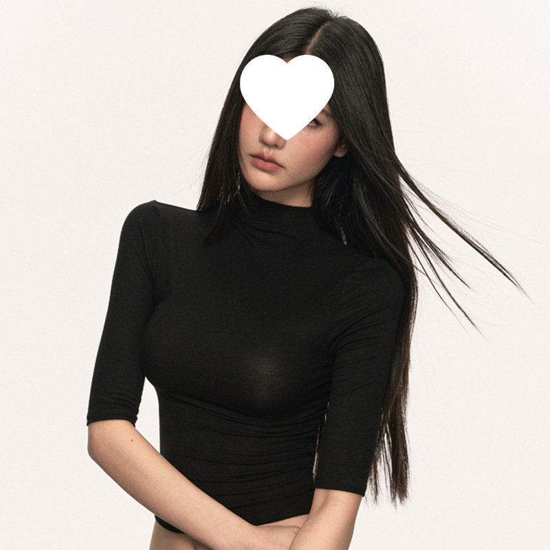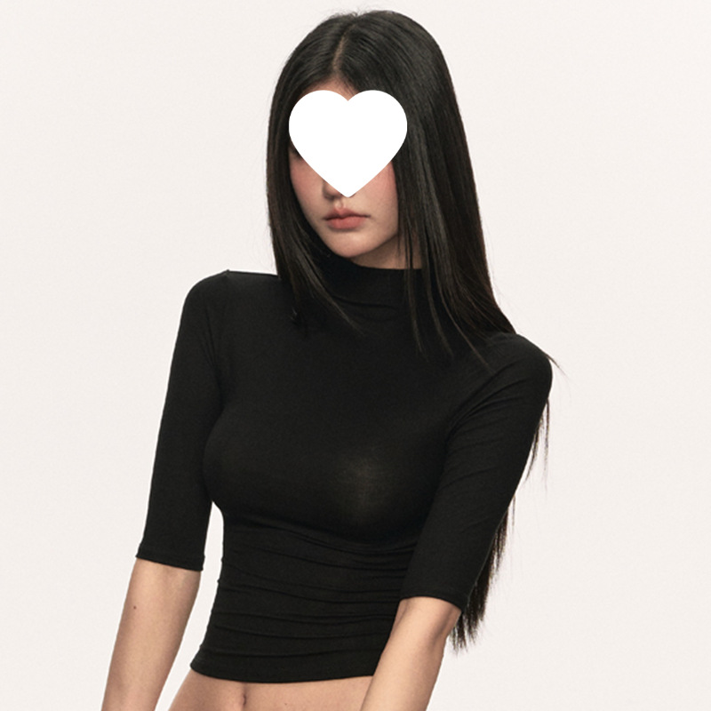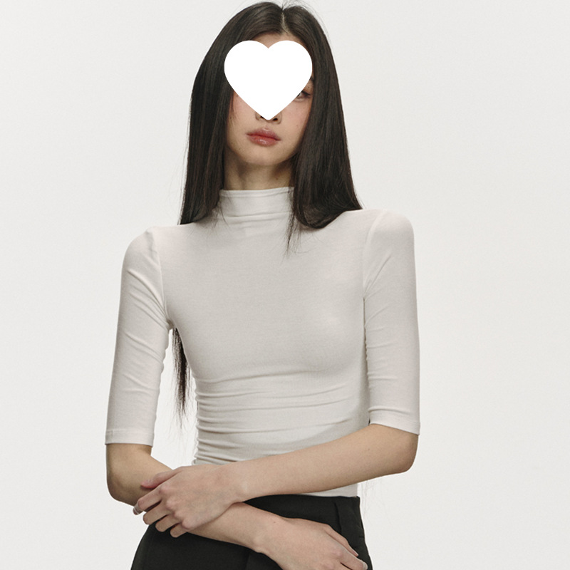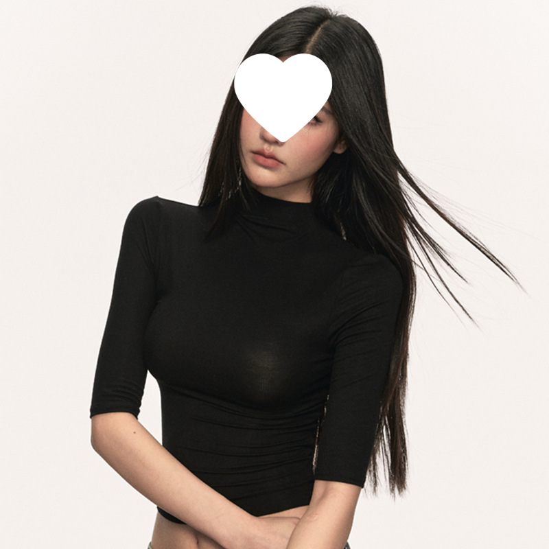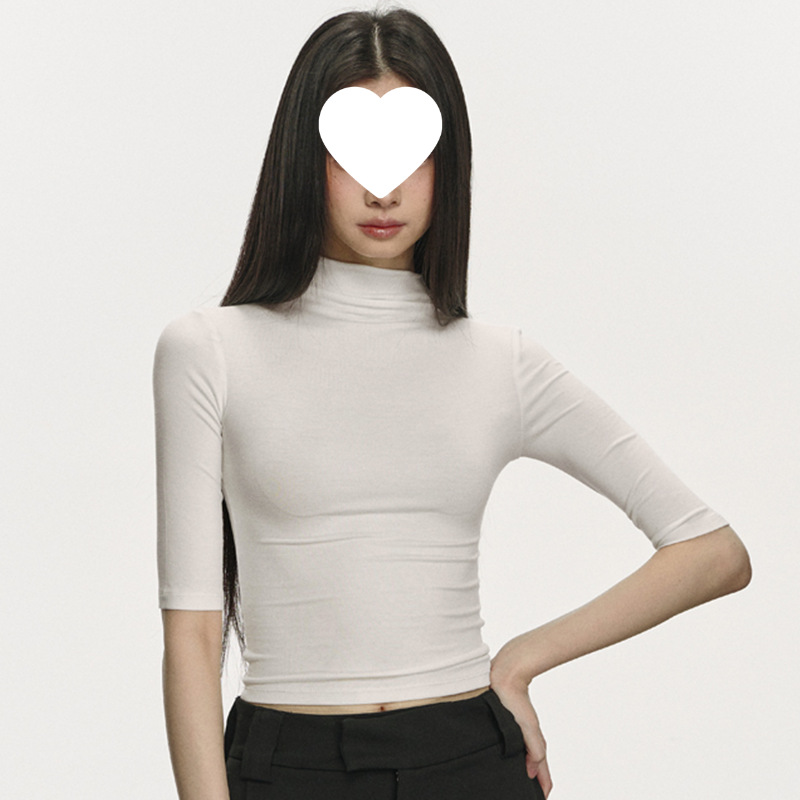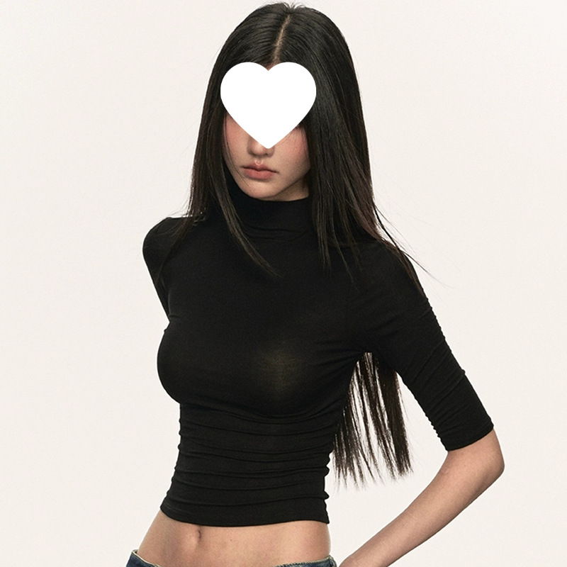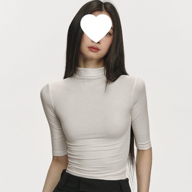 여름 새로운 퓨어 스파이스 걸 쇼트 코튼 5 점 반팔 티셔츠 여성용 슬림핏 슬리밍 올매치 디자인 센스 탑스토어 가기