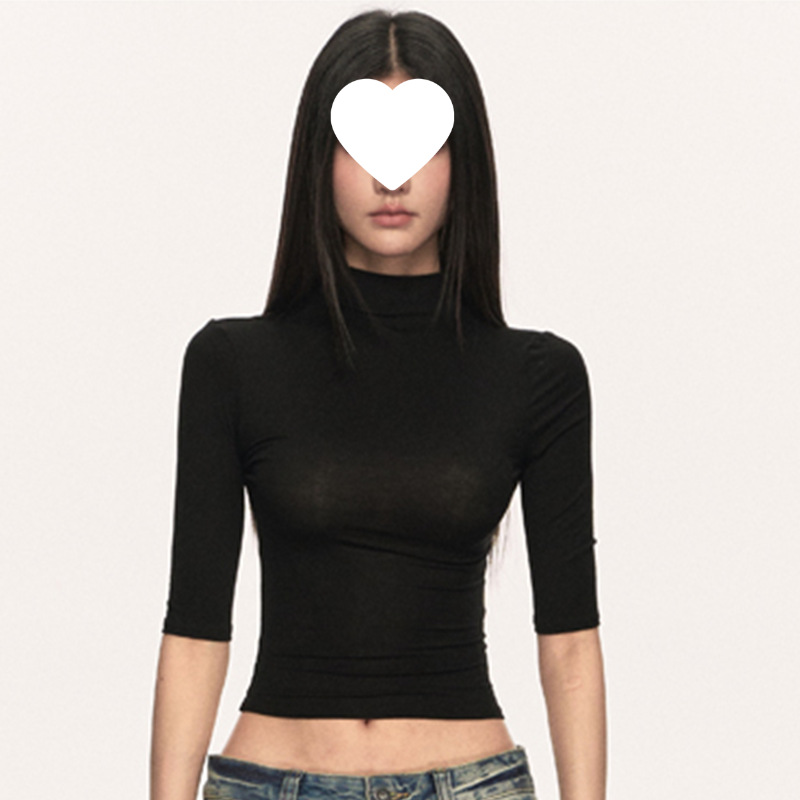 여름 새로운 퓨어 스파이스 걸 쇼트 코튼 5 점 반팔 티셔츠 여성용 슬림핏 슬리밍 올매치 디자인 센스 탑