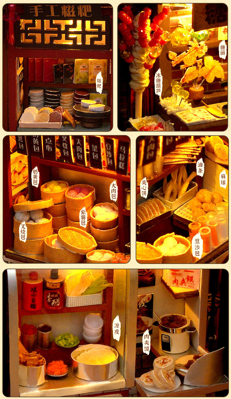 DIY TC27 중국 음식 기록 수제 오두막 입체 서적 스탠드 마이크로 미니어처 조립 모델 퍼즐 선물스토어 가기