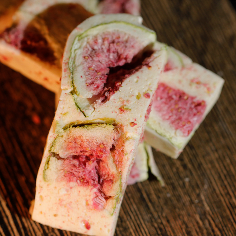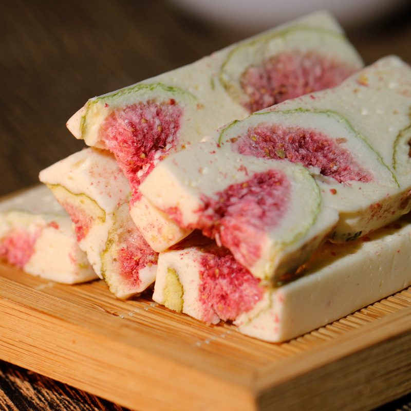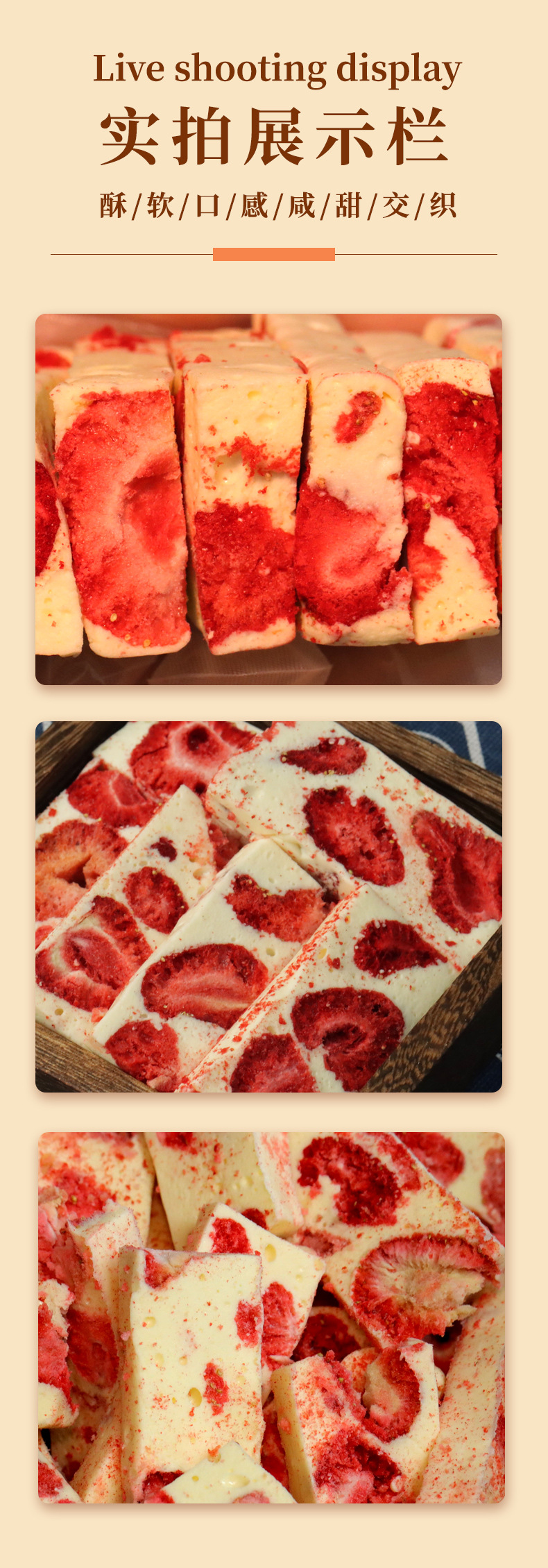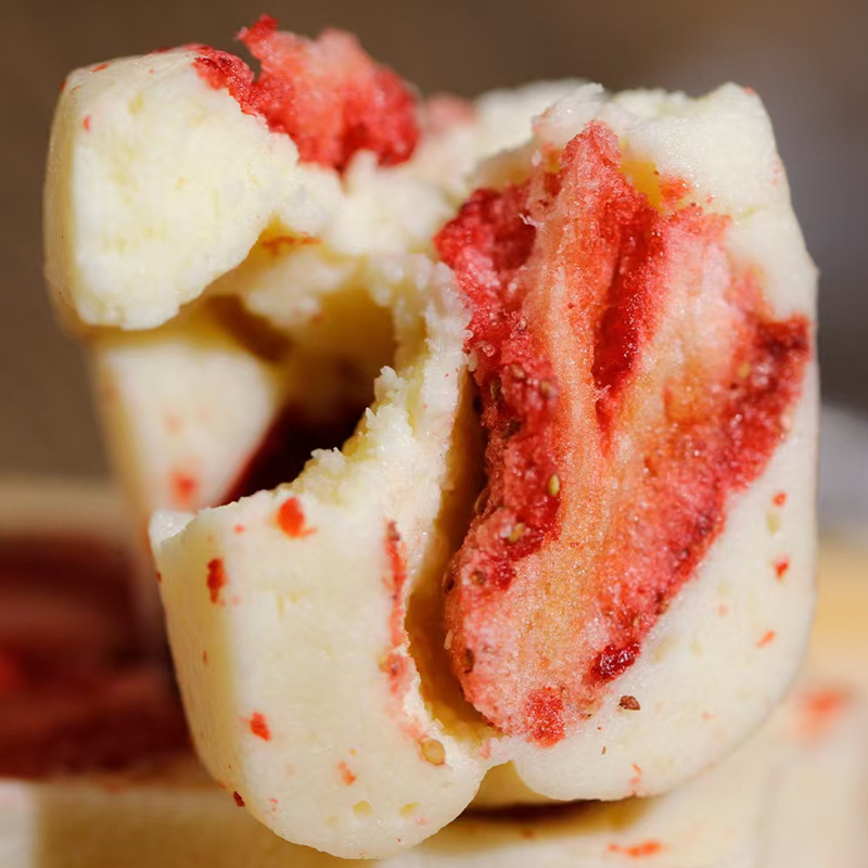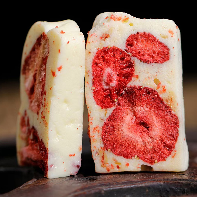 配料表:棉花糖(麦芽糖浆、白砂糖、明胶)、草莓干(草莓)、全脂乳粉、黄油