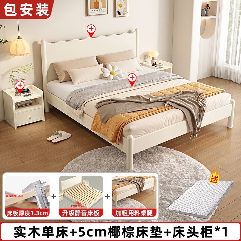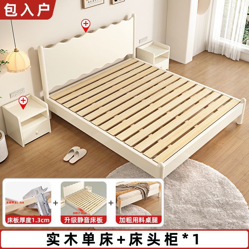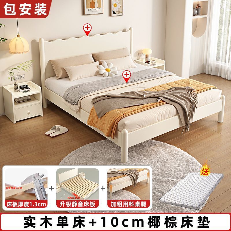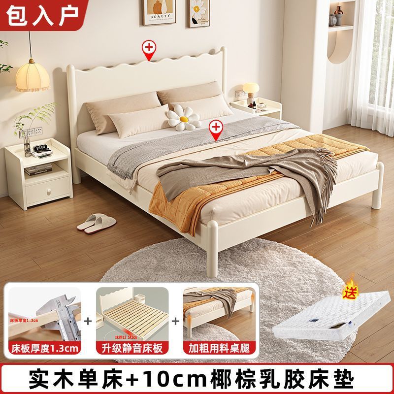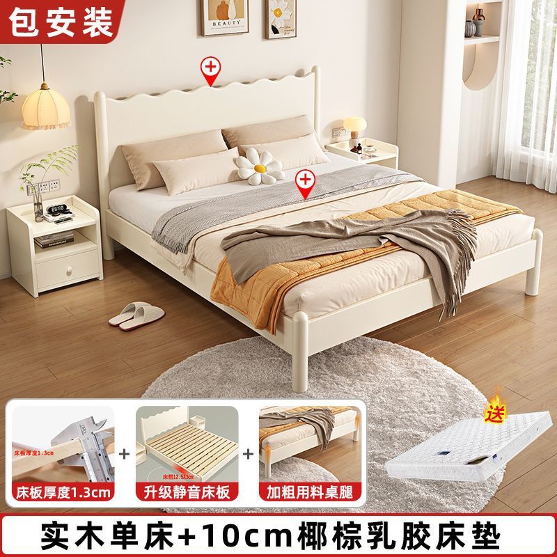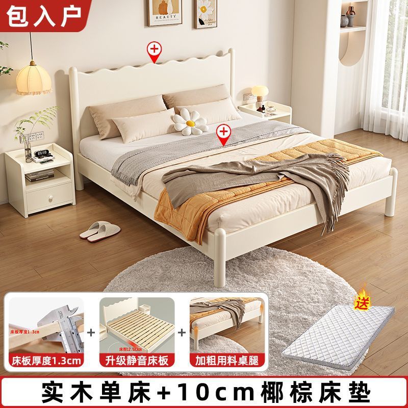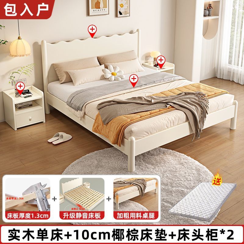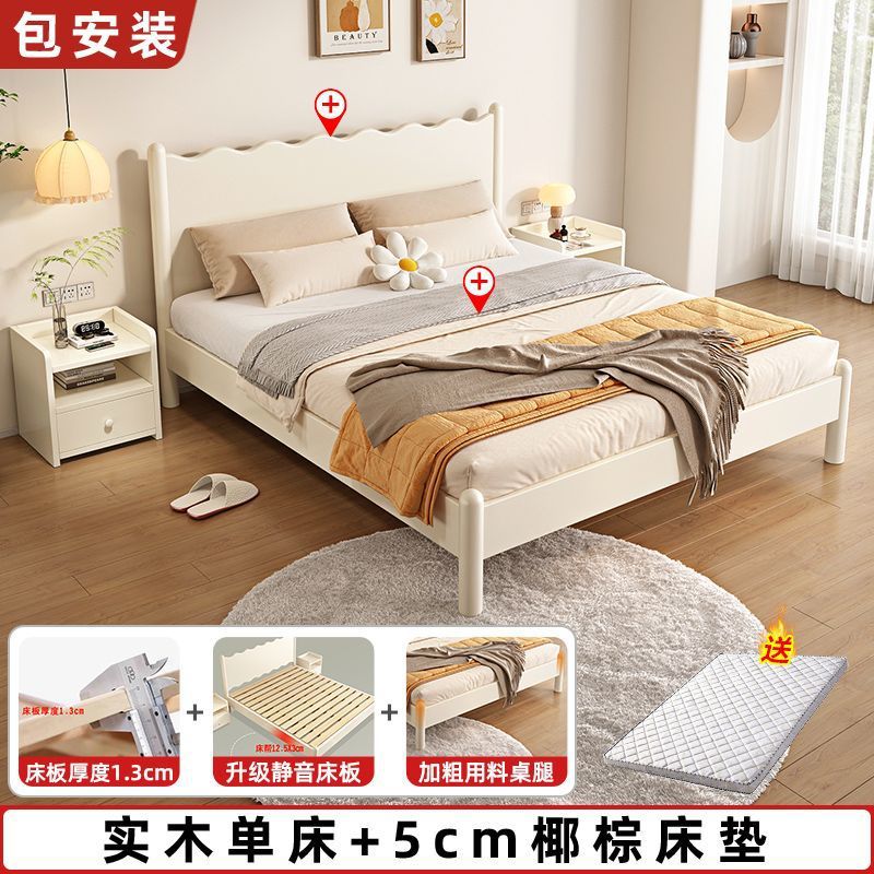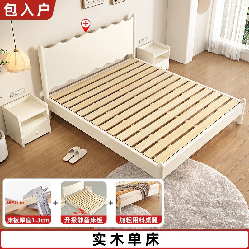 단단한 나무 침대 현대 간단한 가구 1.2 m 마스터 침실 싱글 침대 성인 노르딕 침대 1.8m 작은 아파트 침대스토어 가기