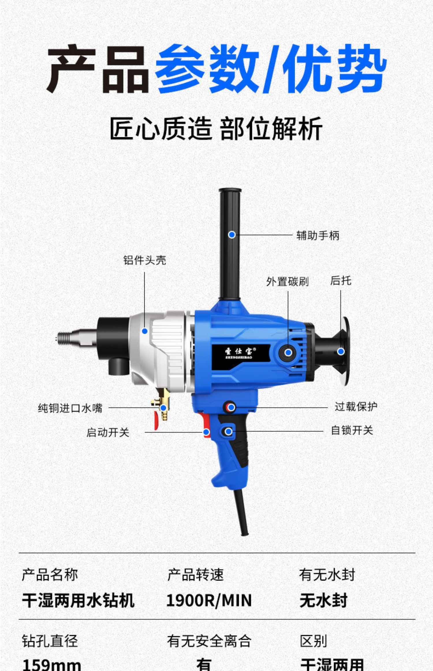 독일 Shengshibao 고출력 물 시추 장비 드릴링 머신 에어컨 핸드 헬드 홀 드릴링 워터 드릴링 드릴 구멍스토어 가기