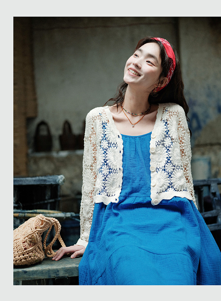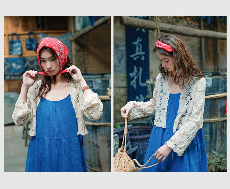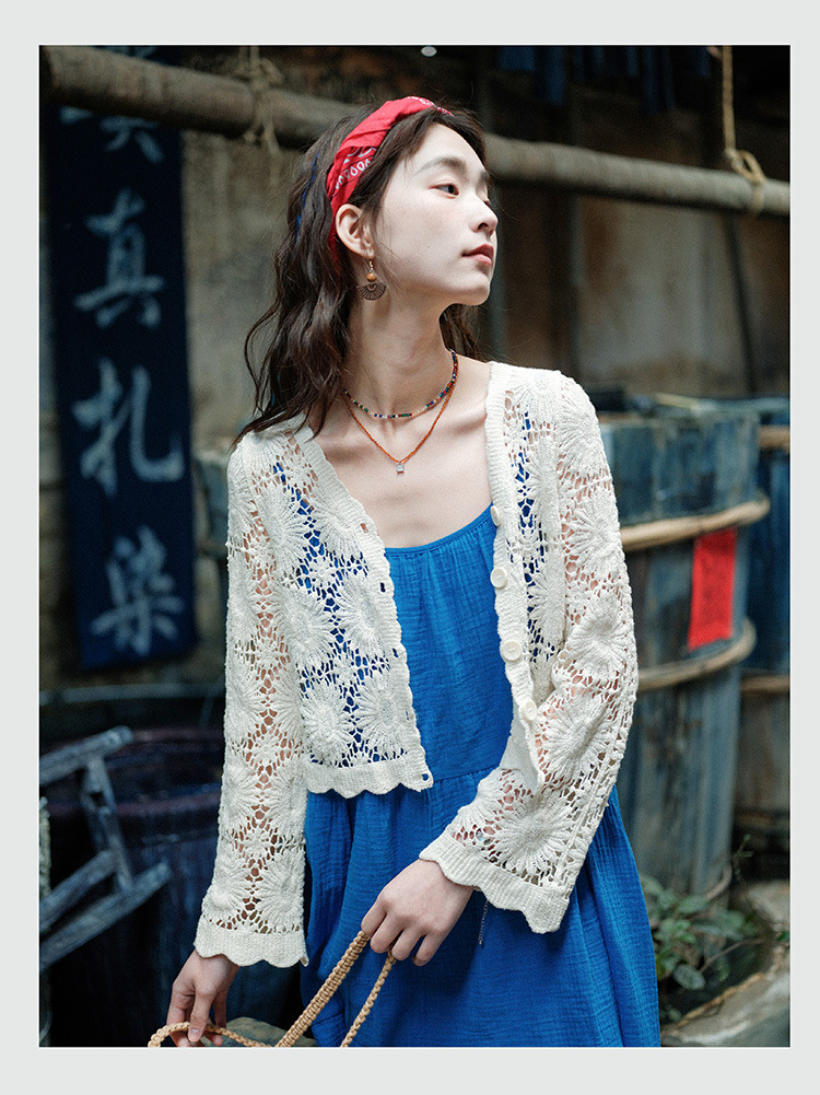 최고의 여성 봄과 여름 패션 V 넥 할로우 에어컨 선스크린 니트 셔츠 긴 소매 카디건 외부 짧은 코트