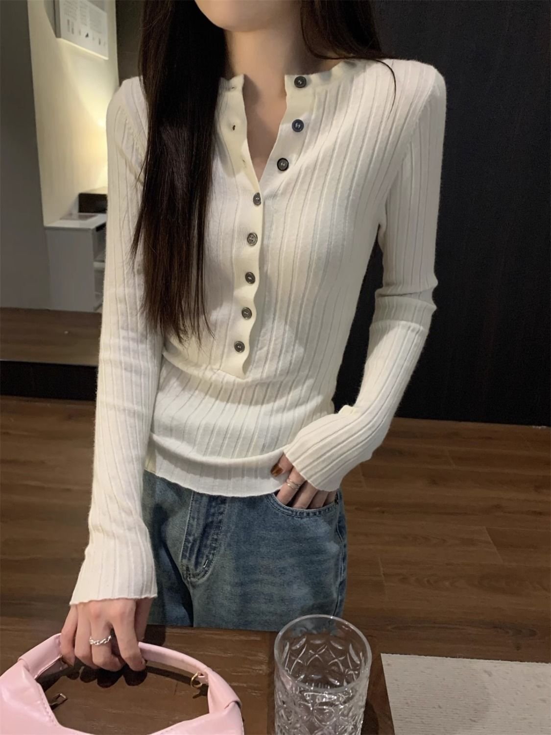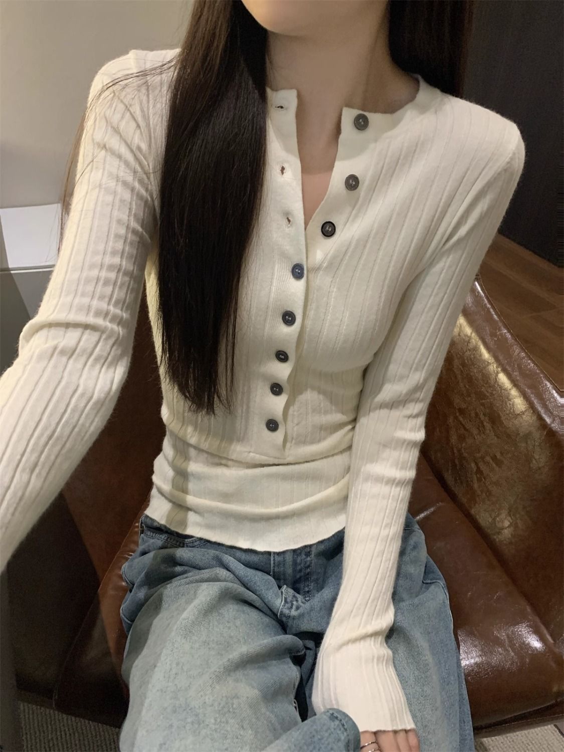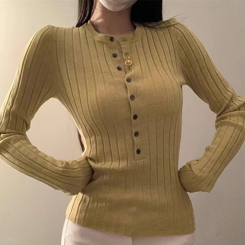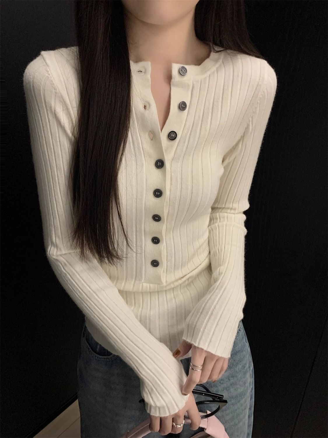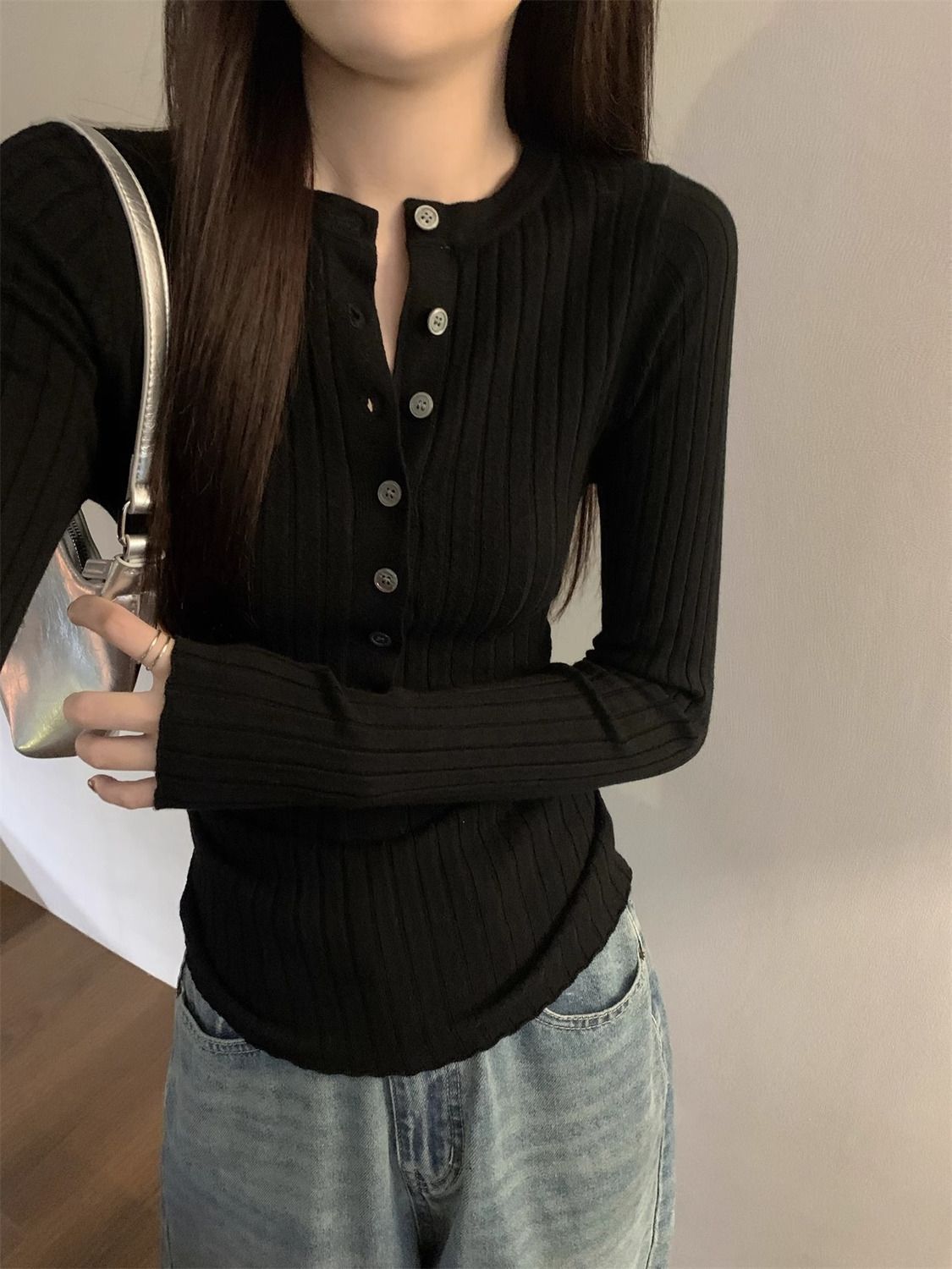 한국 스타일 슬림 핏 버튼 핏 긴팔 스웨터 여자 봄 2025 새로운 슬림베이스 올 매치 심플 탑