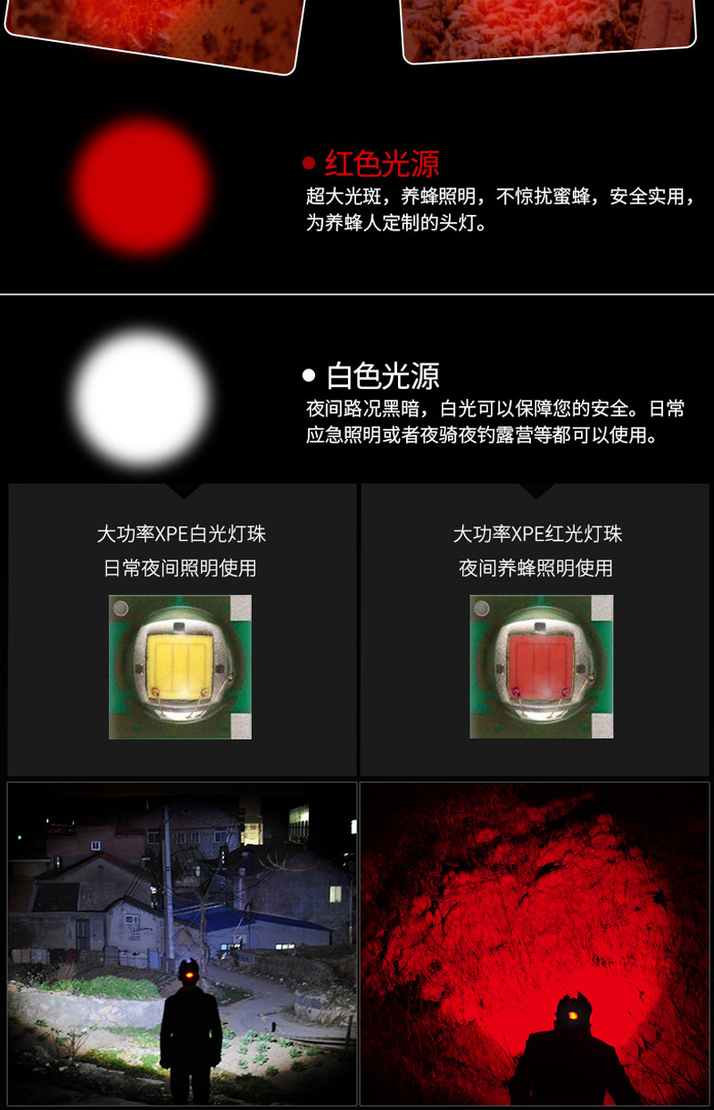 특수 양봉 헤드 라이트 옐로우 라이트 화이트 라이트 레드 라이트 나이트 체크 꿀벌 작업 컬러 실명 레드 라인 초점 대형 전조등