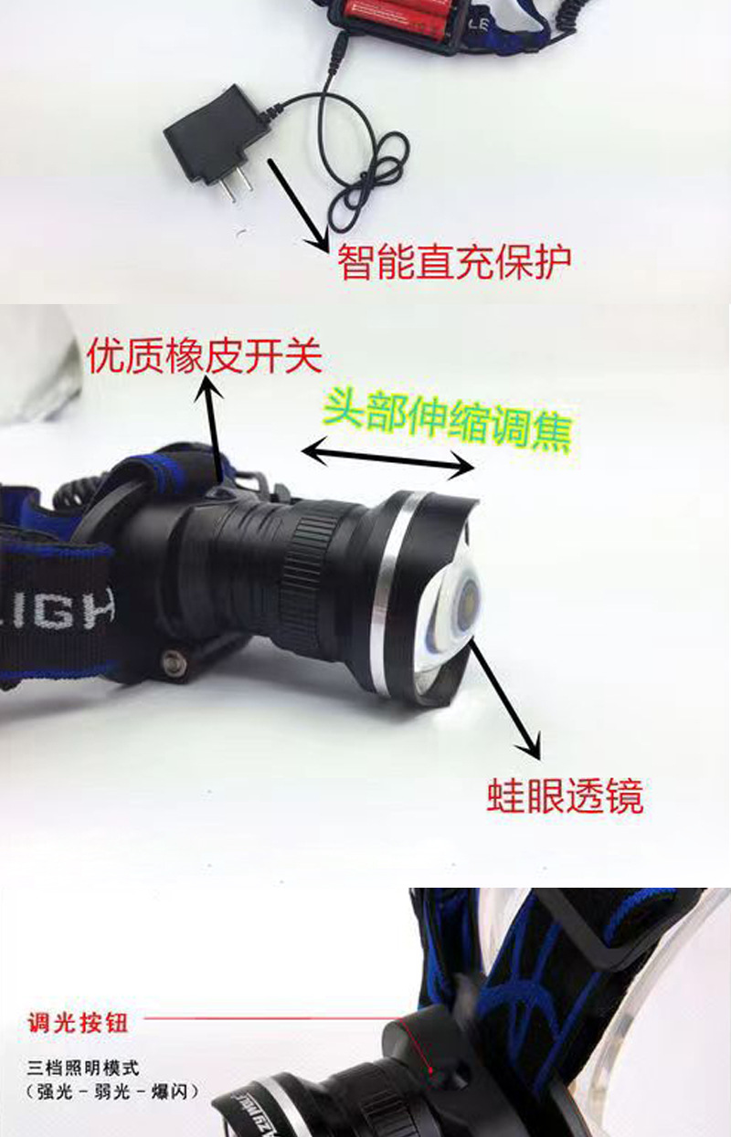 • 백색광 + 적색광 헤드라이트(2*18650 배터리 + 충전기 1개)