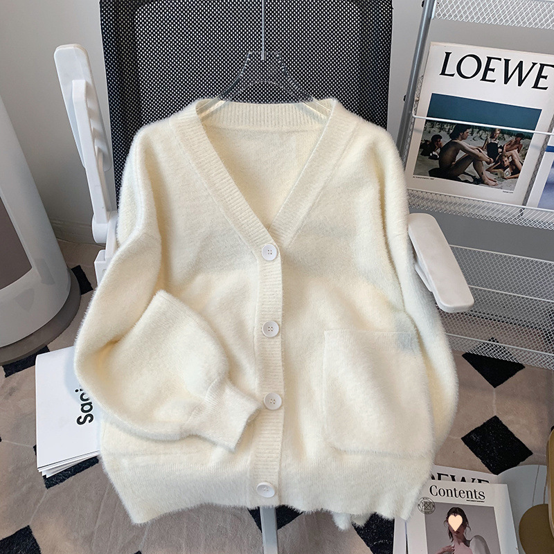 2025 새로운 봄 푹신한 니트 스웨터 카디건 코트 여성용 작은 느슨한 대학 스타일 탑