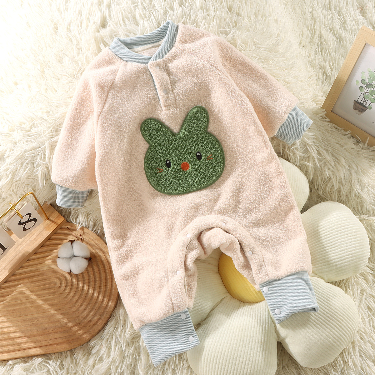 아기의 기모 두꺼운 버니 퍼프 벨벳 소년 소녀를위한 세트 등반 아기 신생아 세트 가을과 겨울 외출스토어 가기