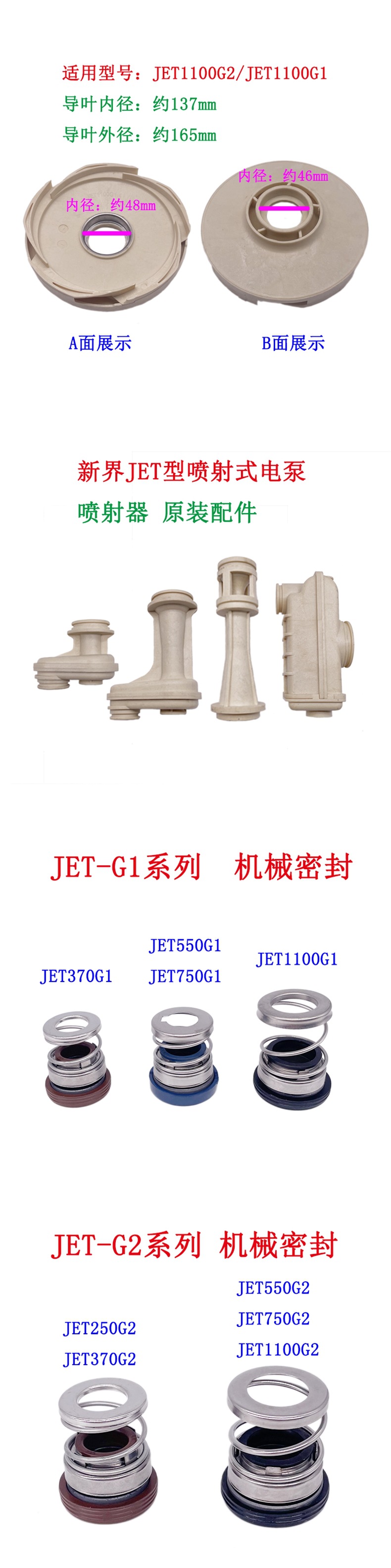 새로운 영토 워터 펌프 액세서리 JET-A/JET-L1/JET-G2 제트 펌프 임펠러 가이드 베인 로드 기계 밀봉 체크 밸브