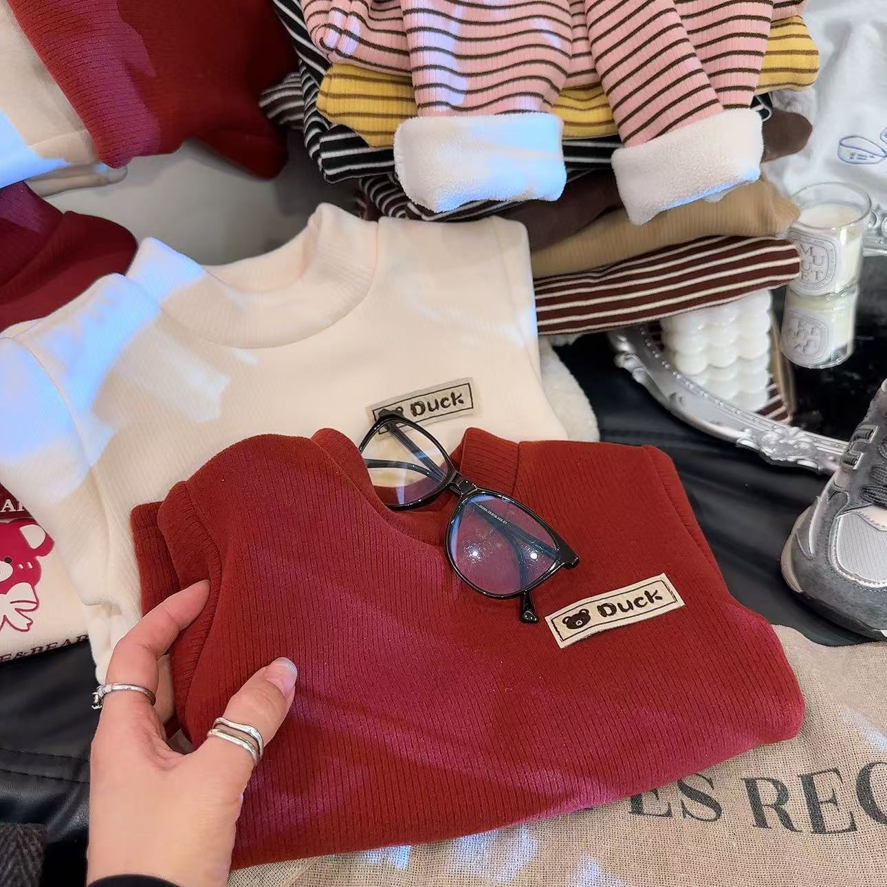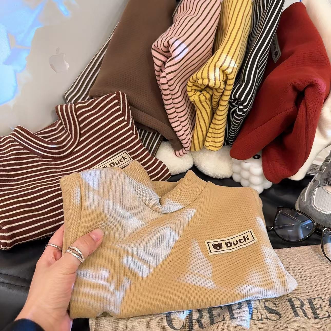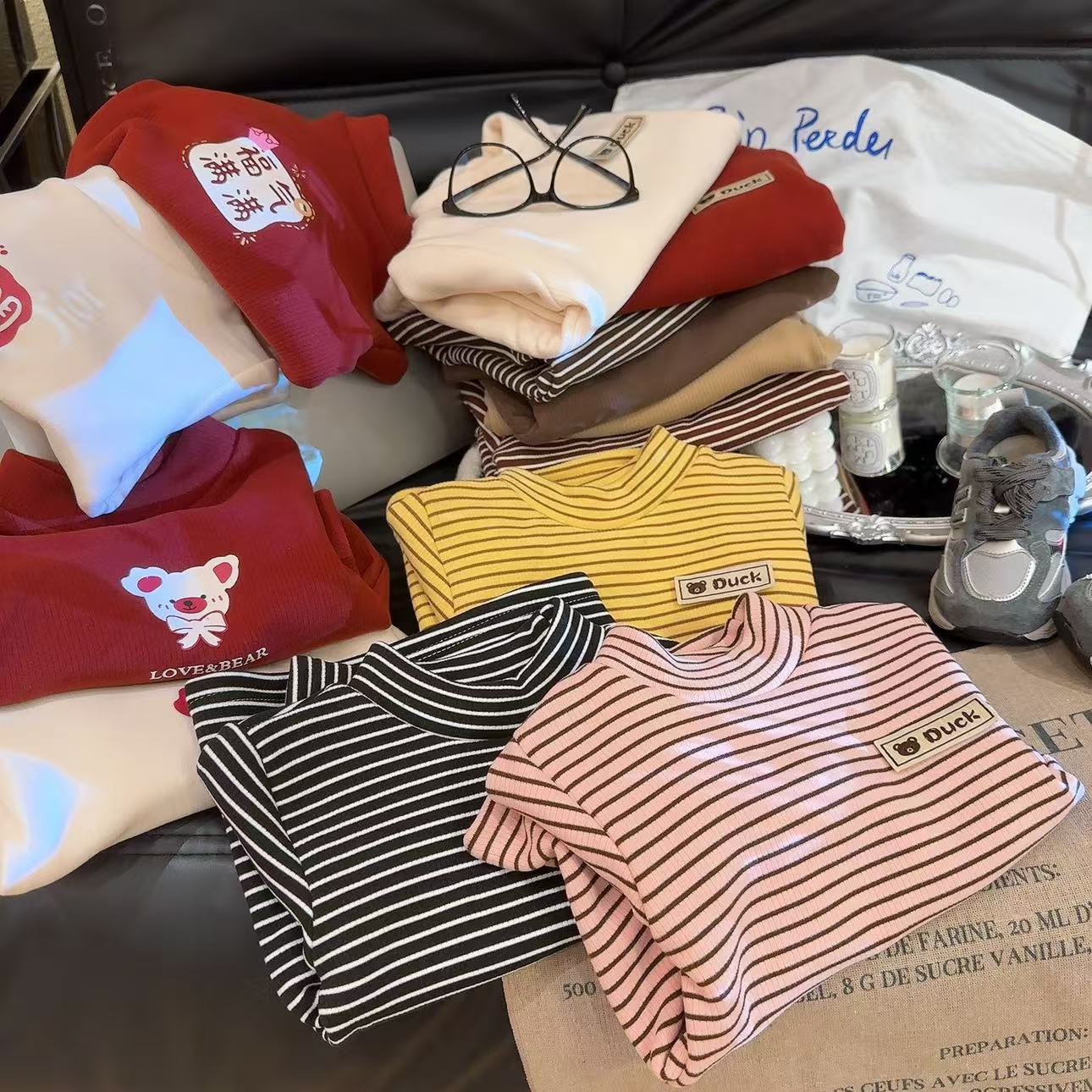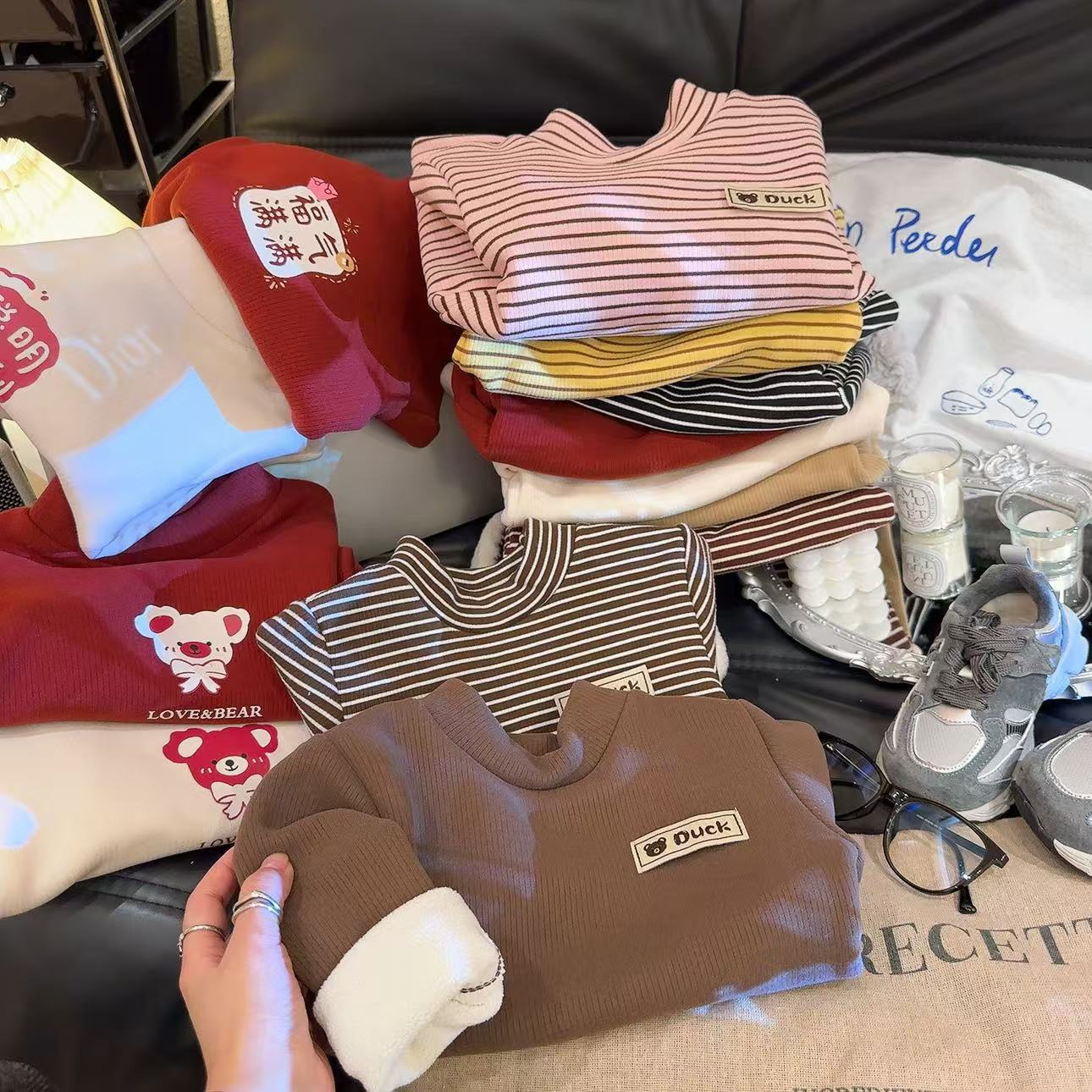 새 어린이 신년 옷 여아 반 높이 칼라 소년 백업 셔츠 기모 두꺼운 긴 소매 티셔츠 중형 및 대형 아동복 탑 0스토어 가기