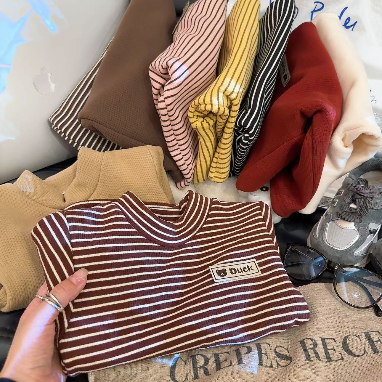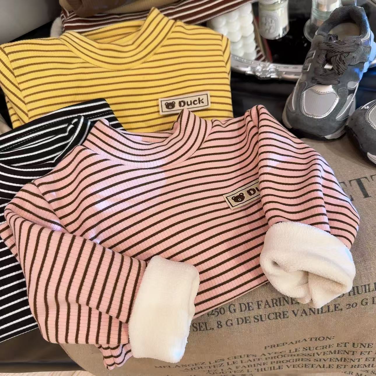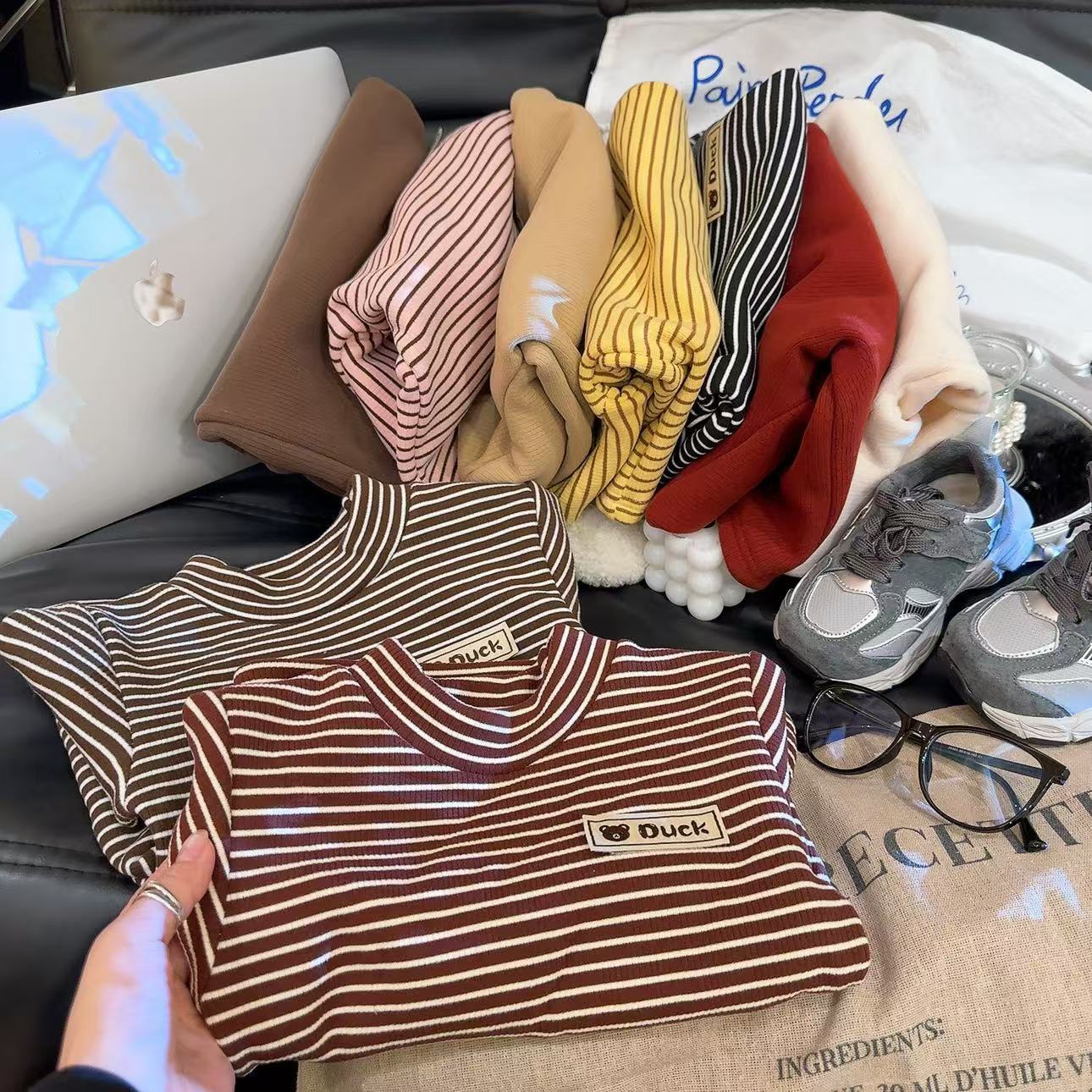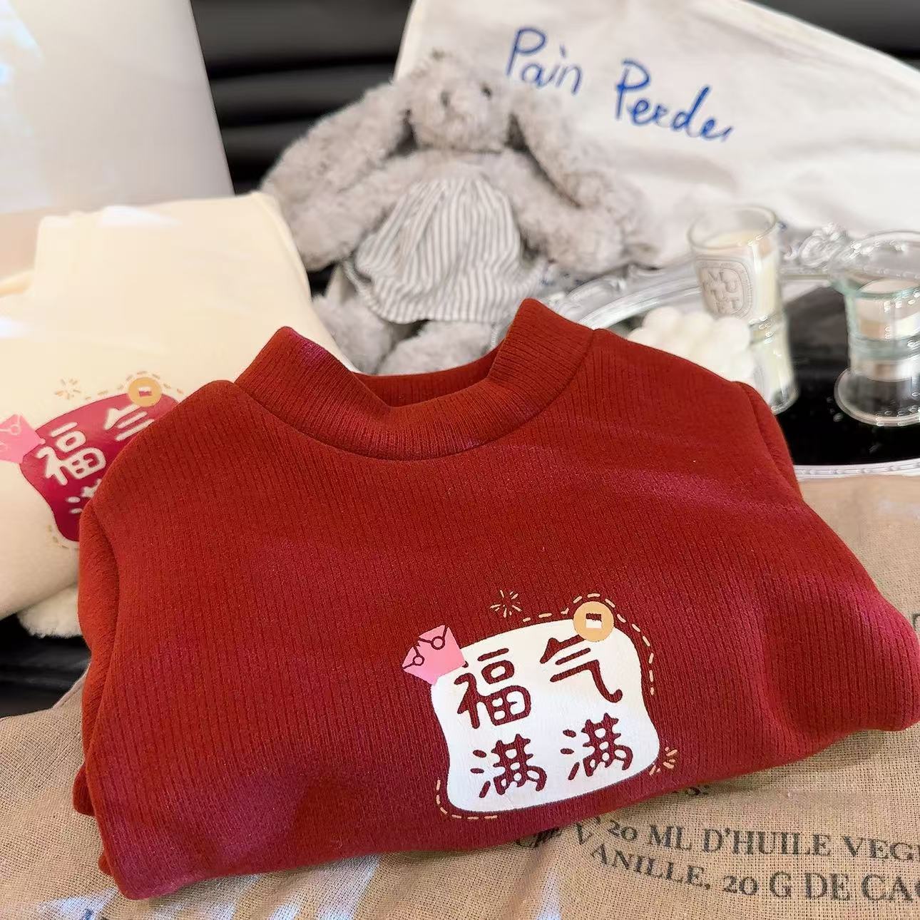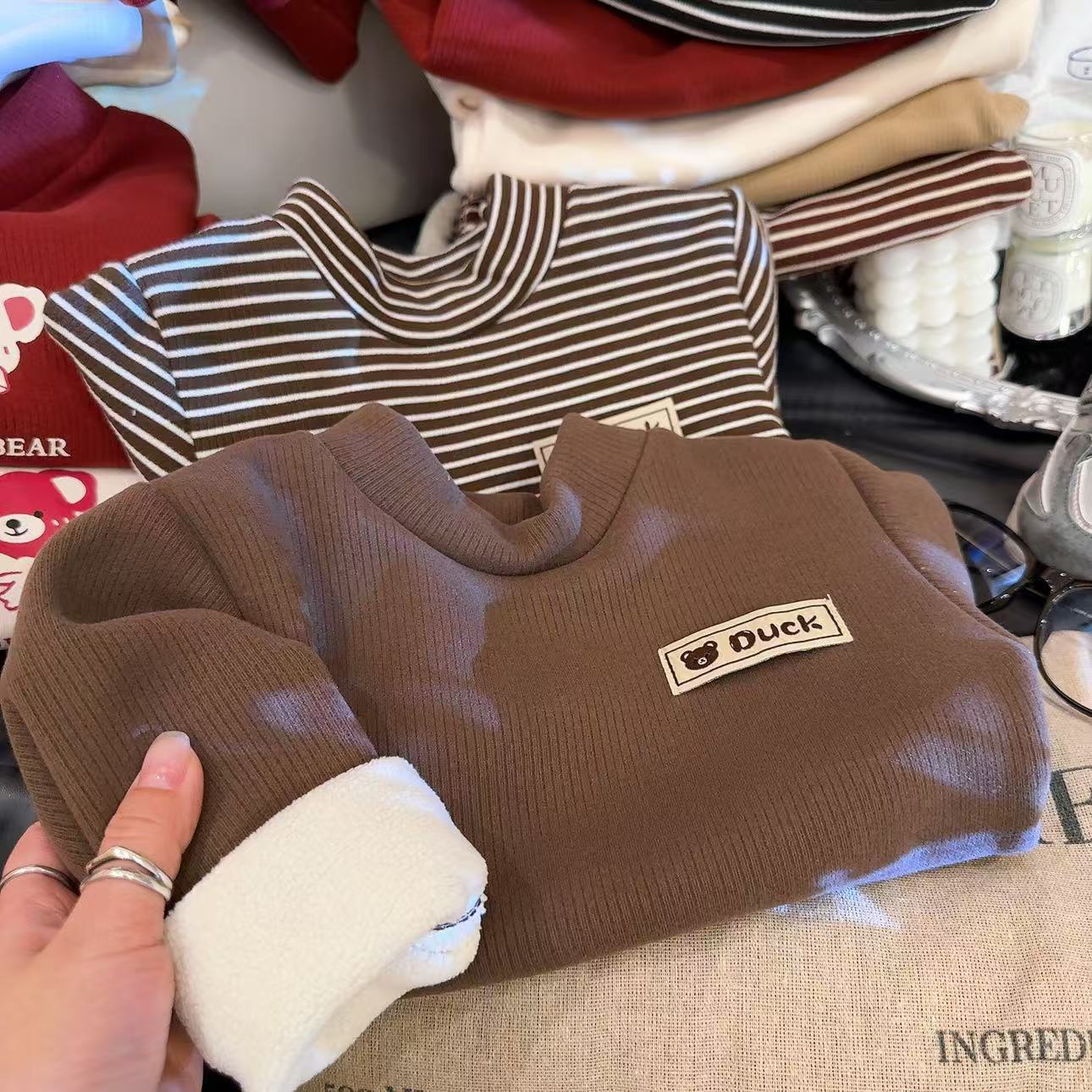 새 어린이 신년 옷 여아 반 높이 칼라 소년 백업 셔츠 기모 두꺼운 긴 소매 티셔츠 중형 및 대형 아동복 탑 0스토어 가기