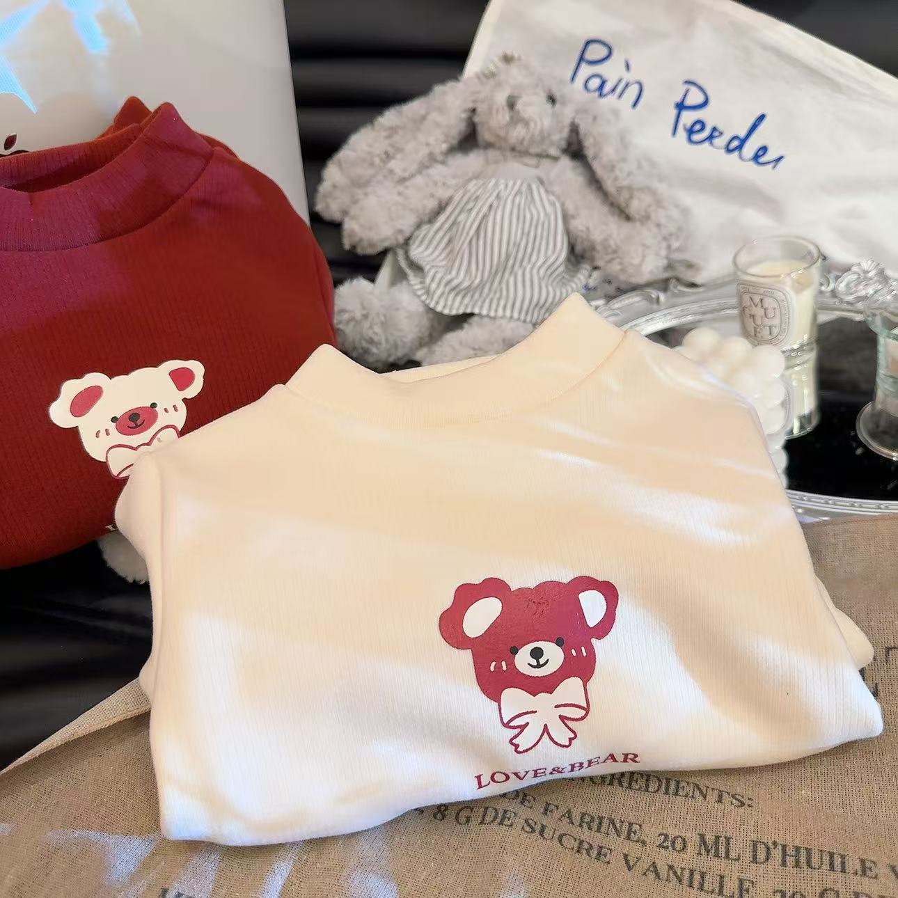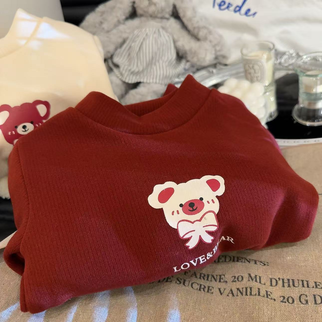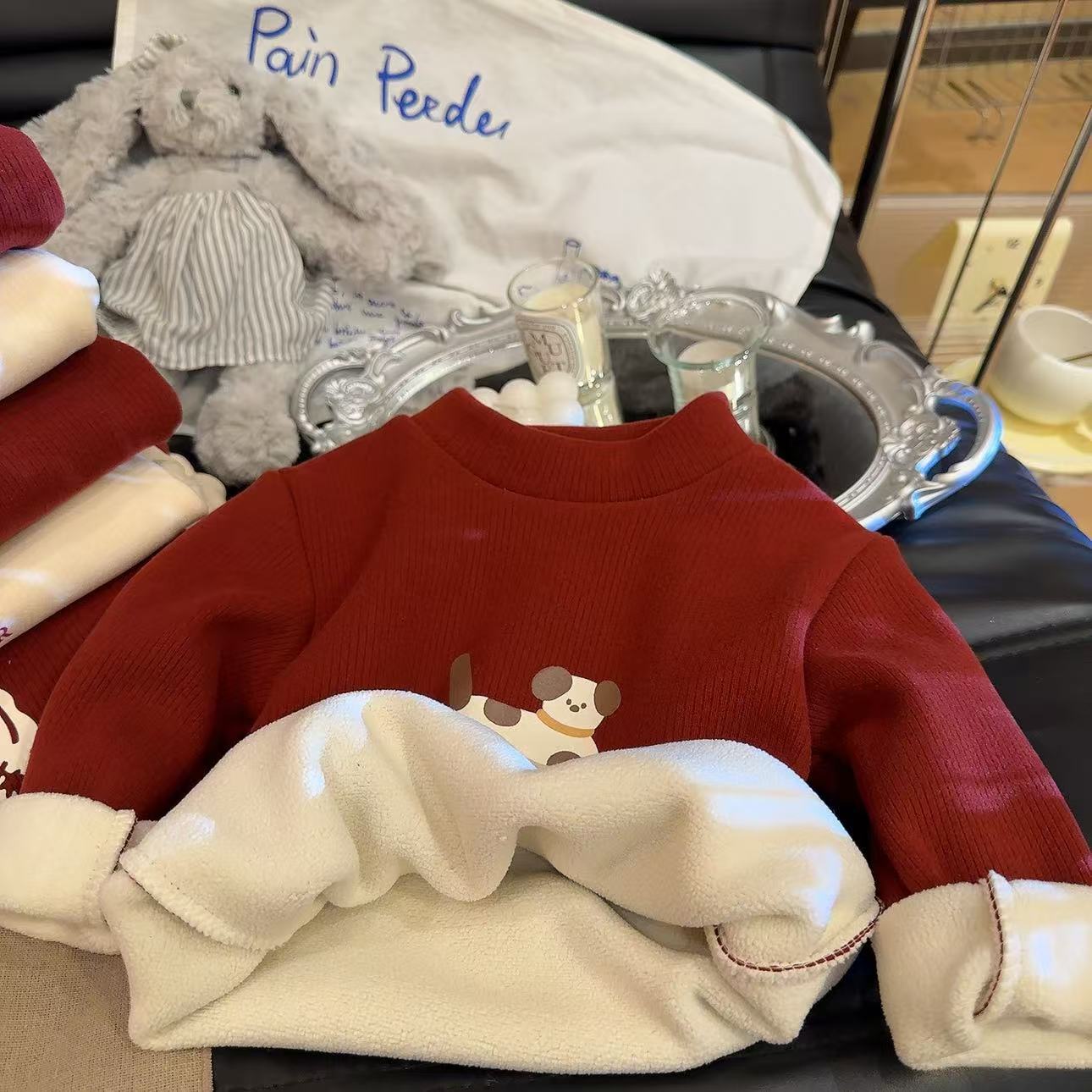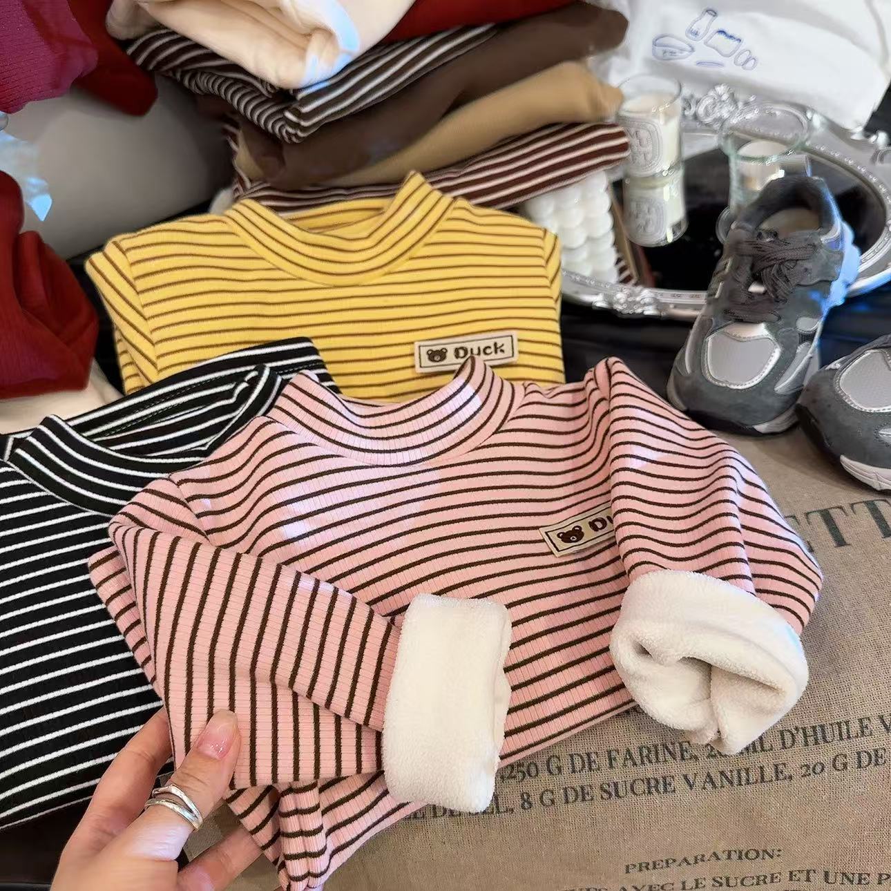 새 어린이 신년 옷 여아 반 높이 칼라 소년 백업 셔츠 기모 두꺼운 긴 소매 티셔츠 중형 및 대형 아동복 탑 0스토어 가기
