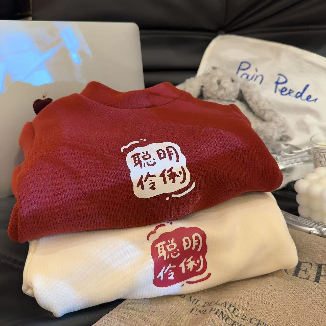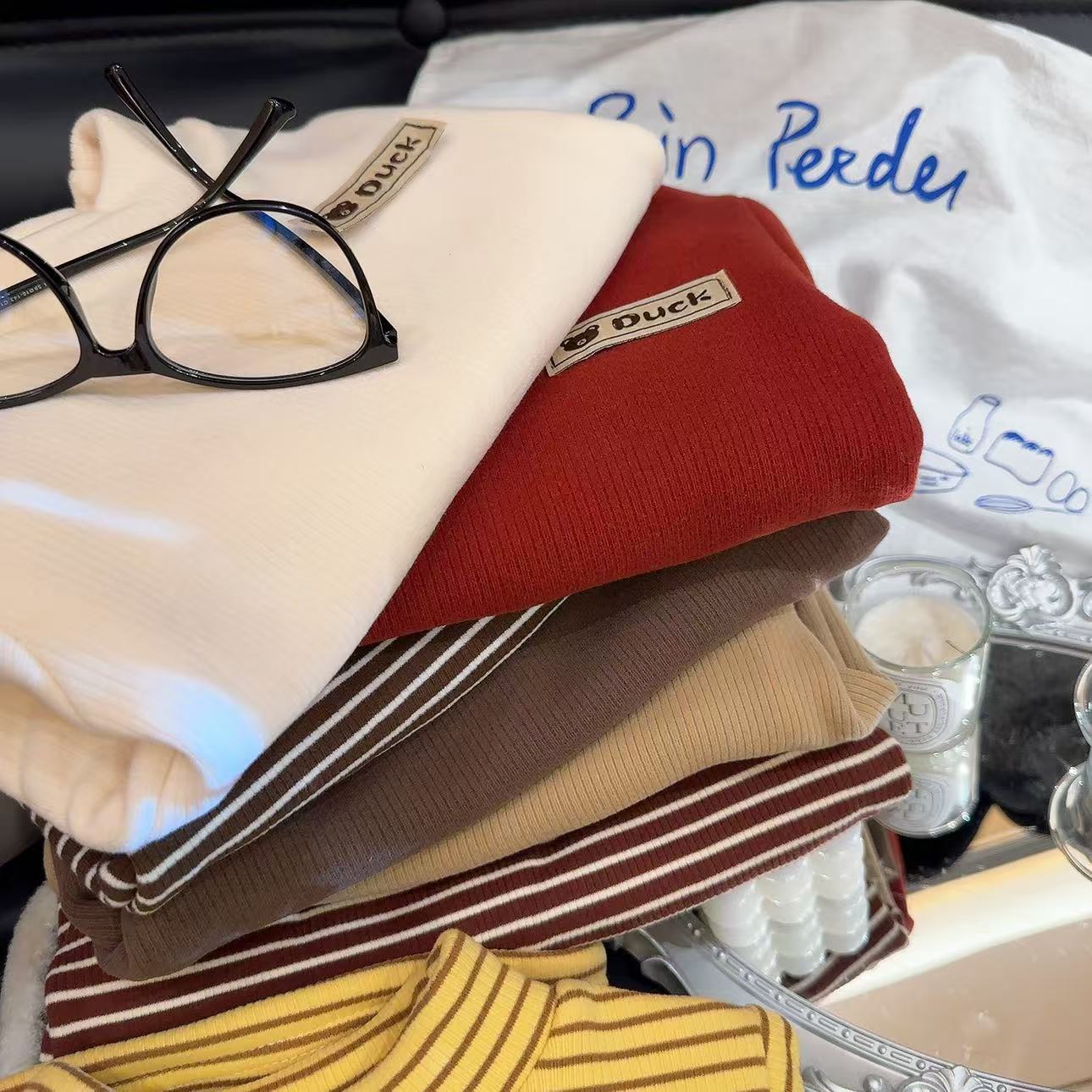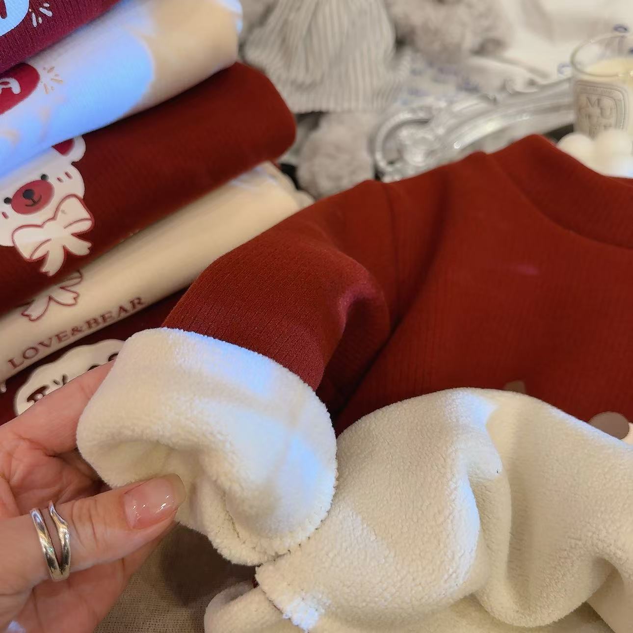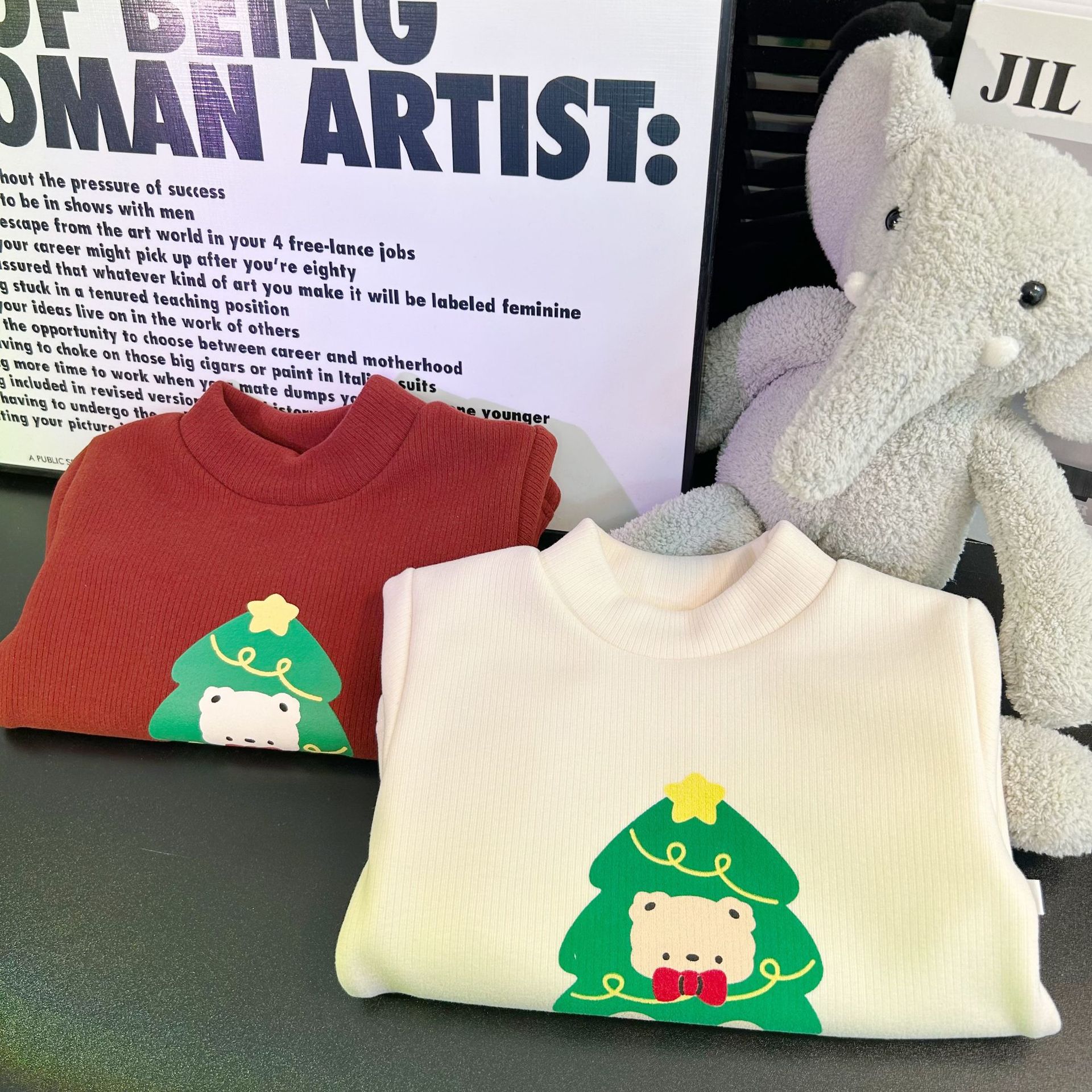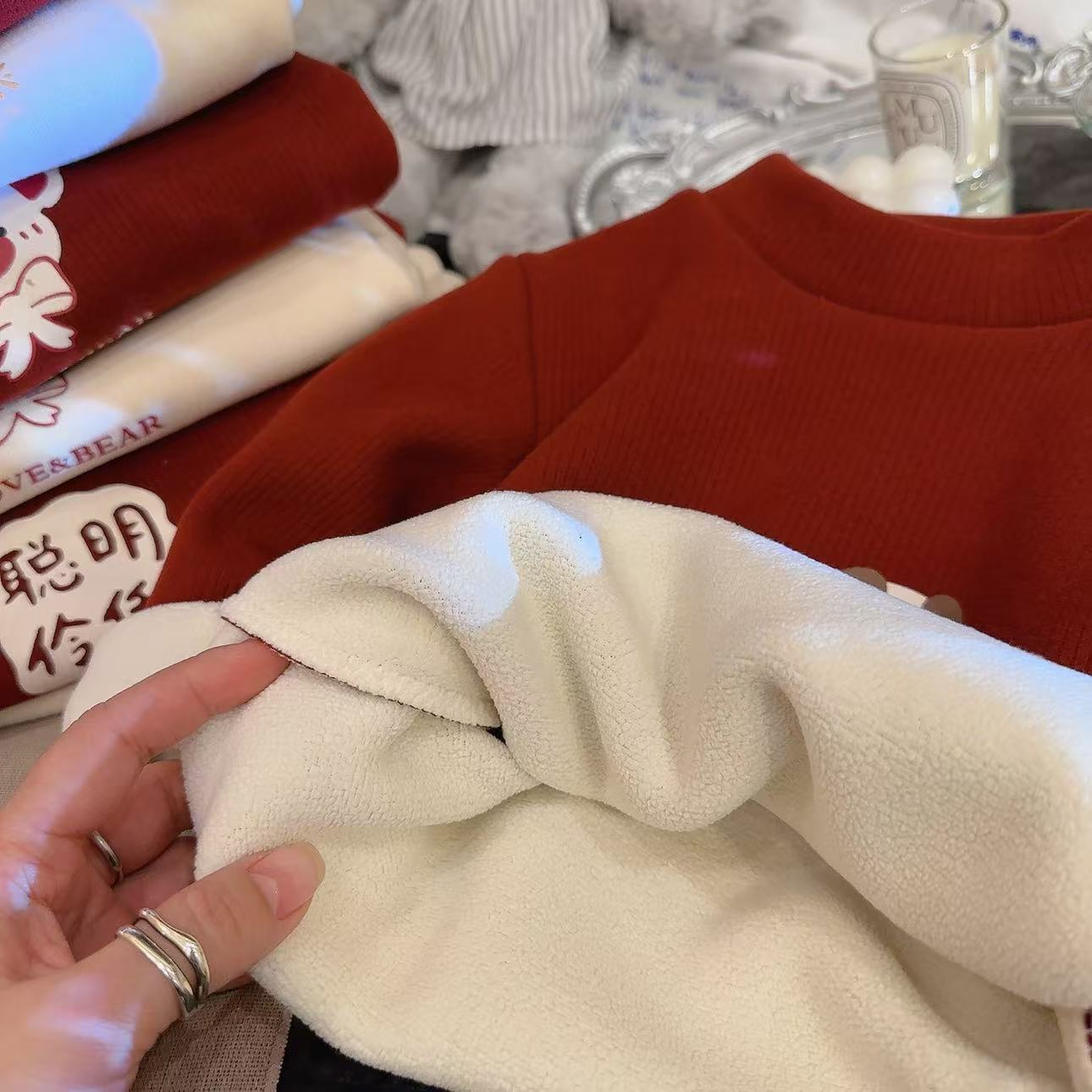 새 어린이 신년 옷 여아 반 높이 칼라 소년 백업 셔츠 기모 두꺼운 긴 소매 티셔츠 중형 및 대형 아동복 탑 0스토어 가기