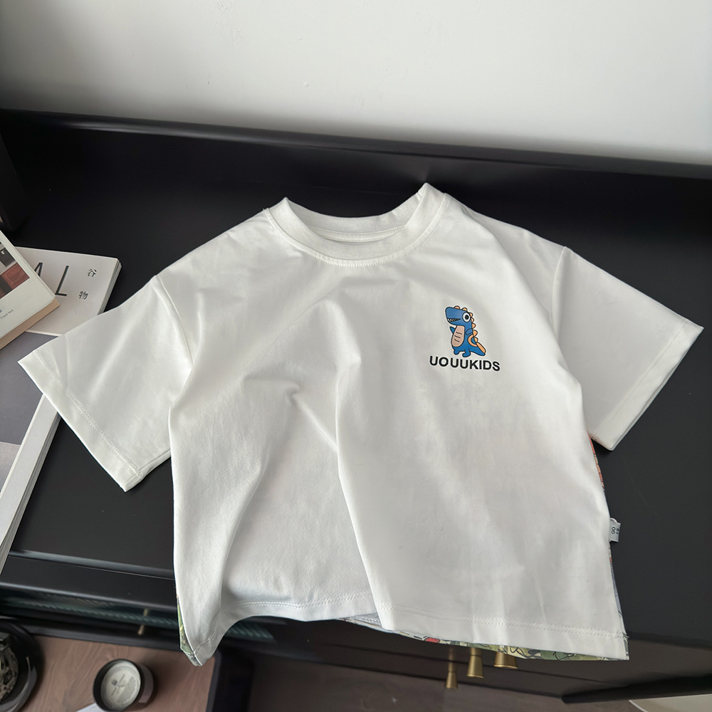 어린이 반팔 여름 새 루즈 티셔츠 풀 백 워터 마크 공룡 프린트 톱 2025 트렌디 쿨 보이즈 의류