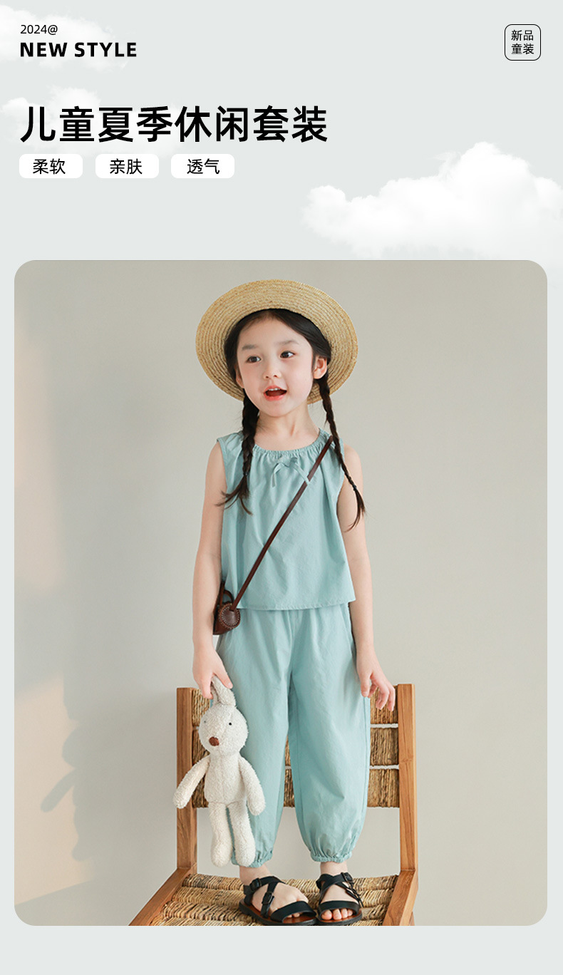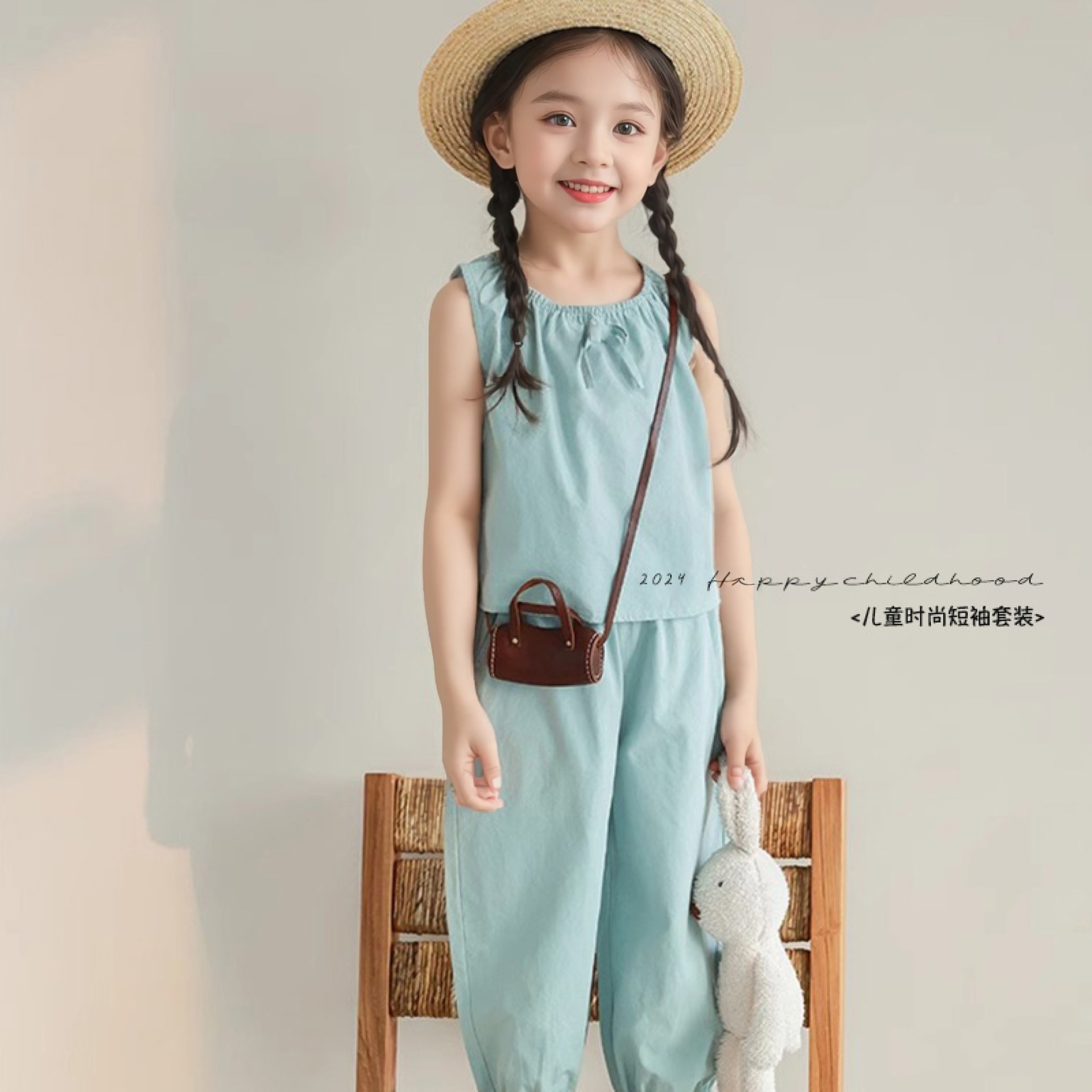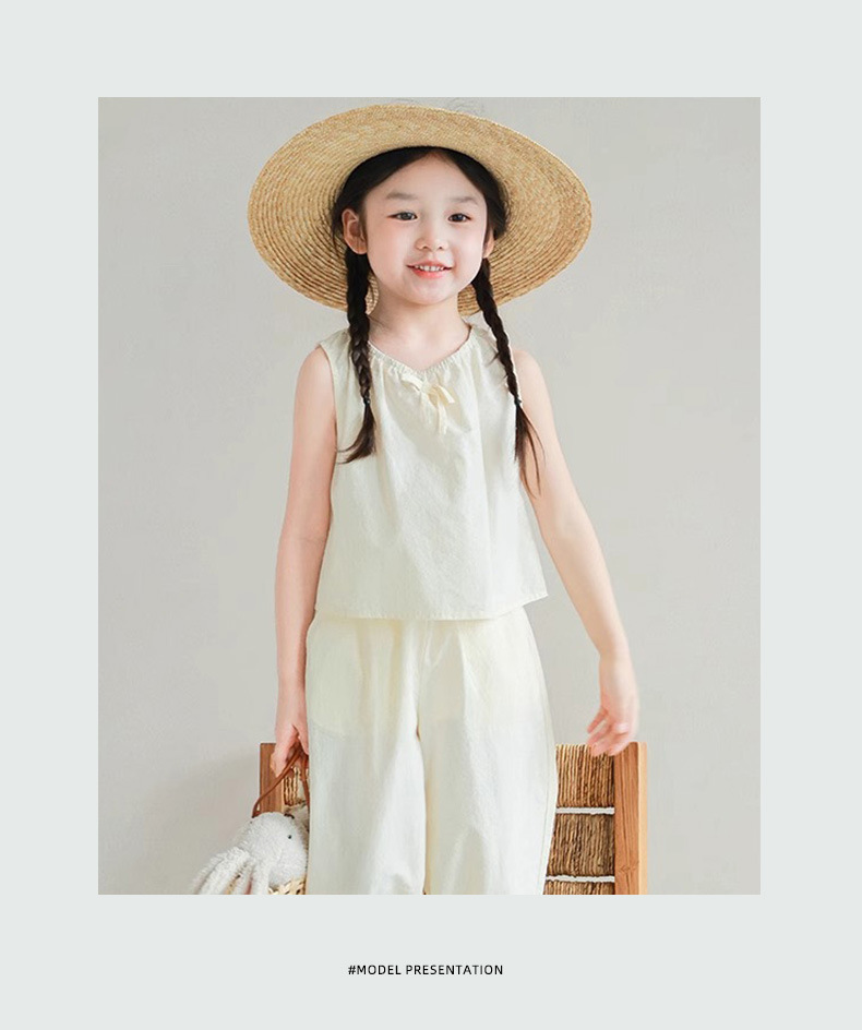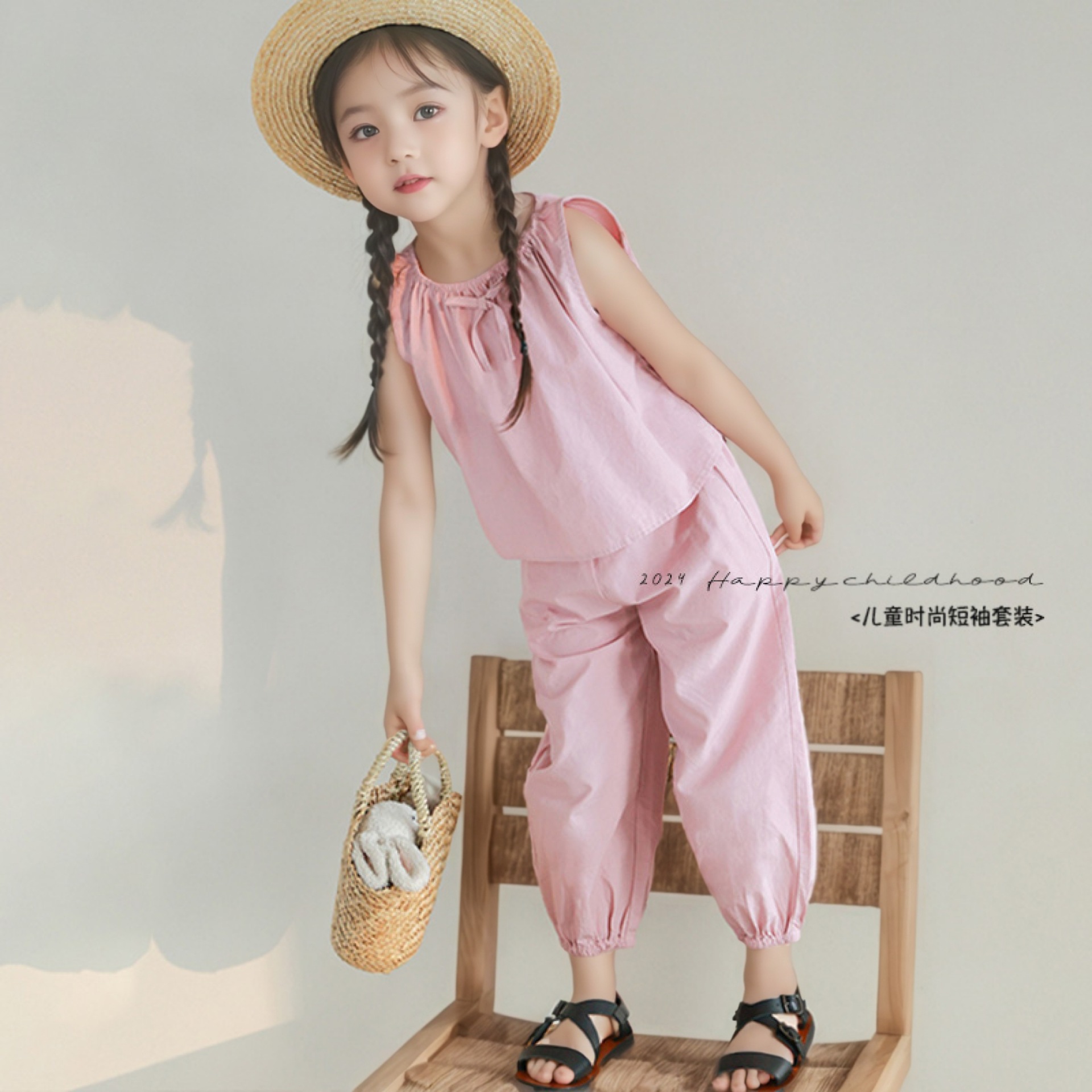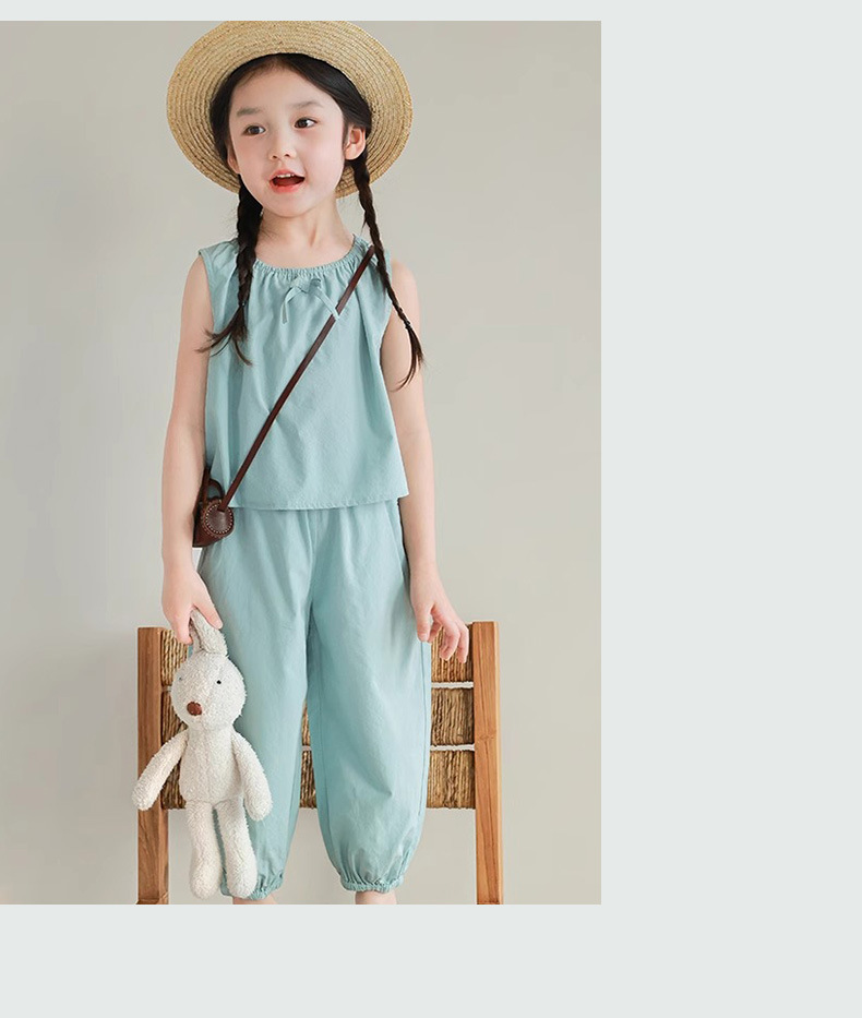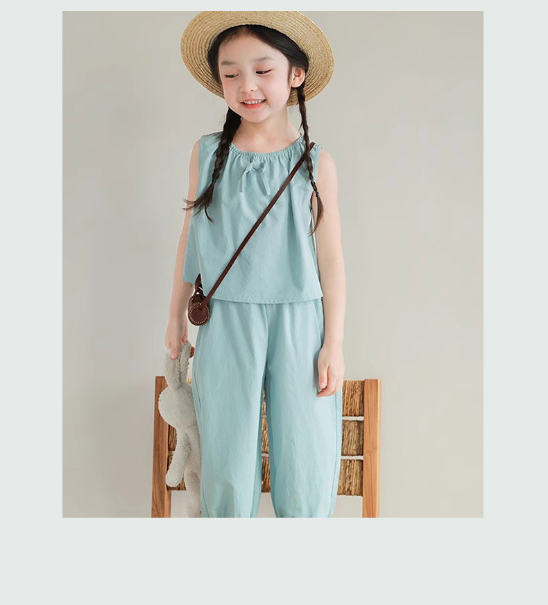 소녀 홈 의류 세트 아기 조끼 슬링 셔츠 바지 여름 옷 어린이 민소매 캐주얼 파자마 에어컨 옷스토어 가기