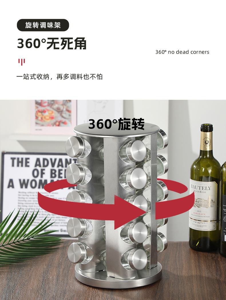 주방 로타리 스파이스 탱크 가정용 테이블 최고 고급 스테인레스 스틸 소금 탱크 5 가지 향신료 분말 저장 랙 조합