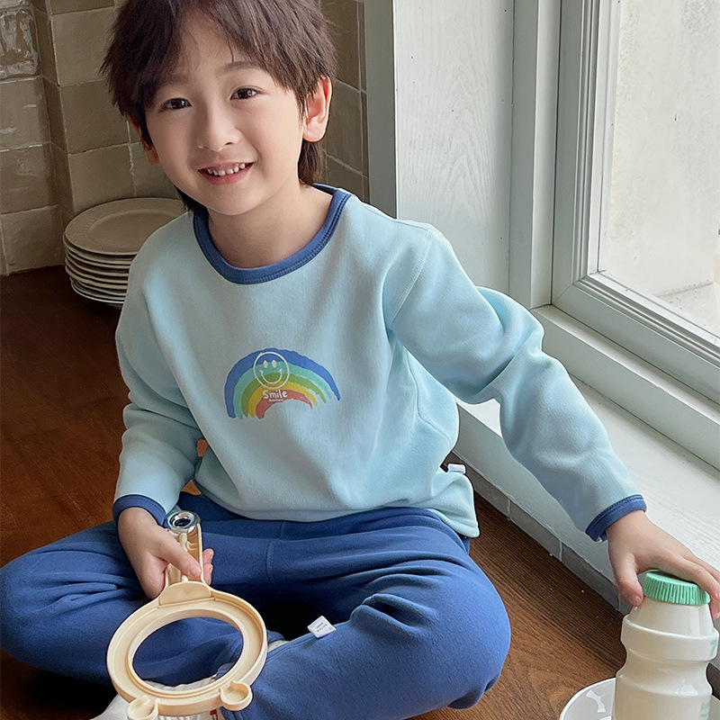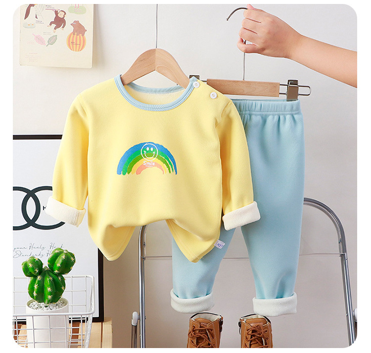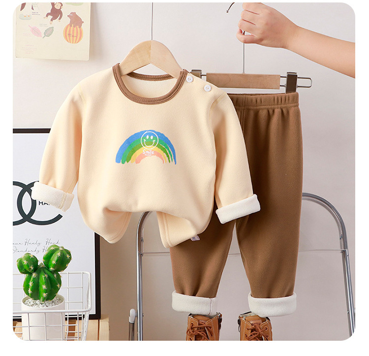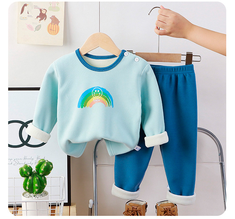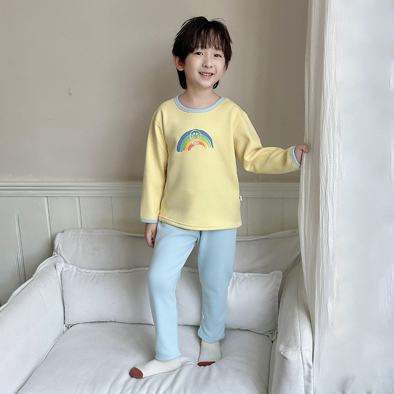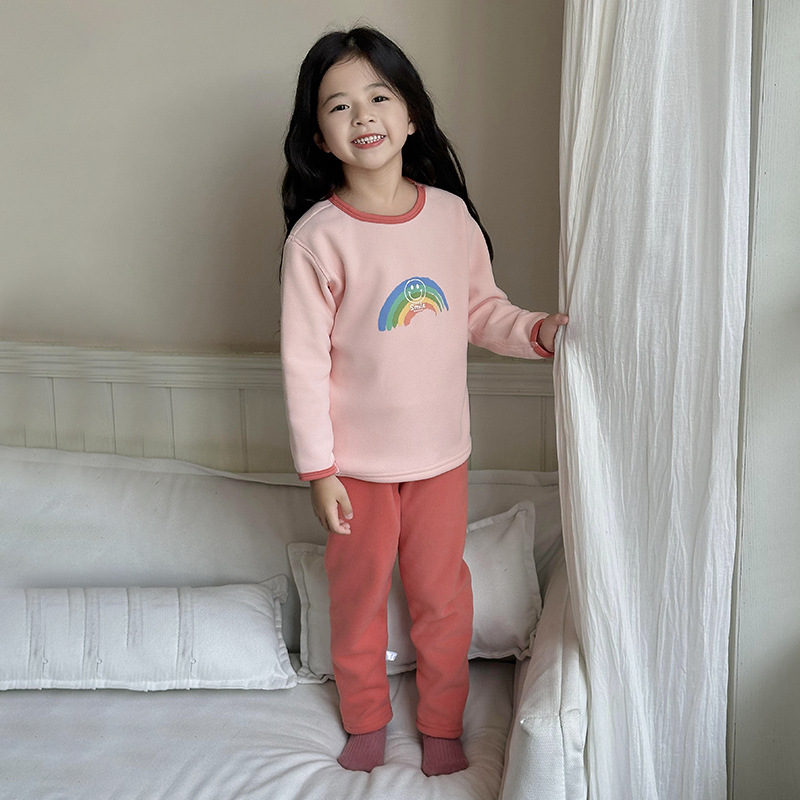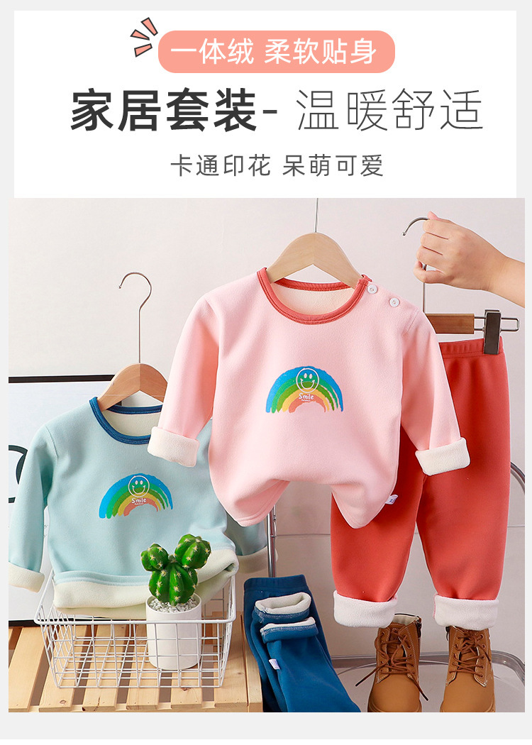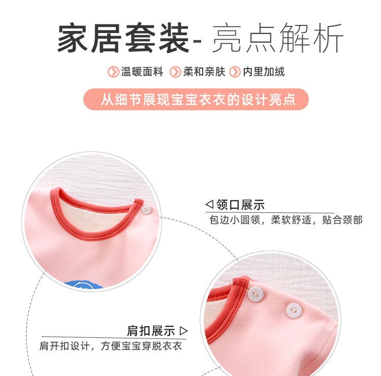 꿀없는 기모 가을과 겨울 세트 두꺼워졌습니다. 아이들은 두꺼운 소년 소녀들의 집 의류 따뜻한 의류 아동복 도매
