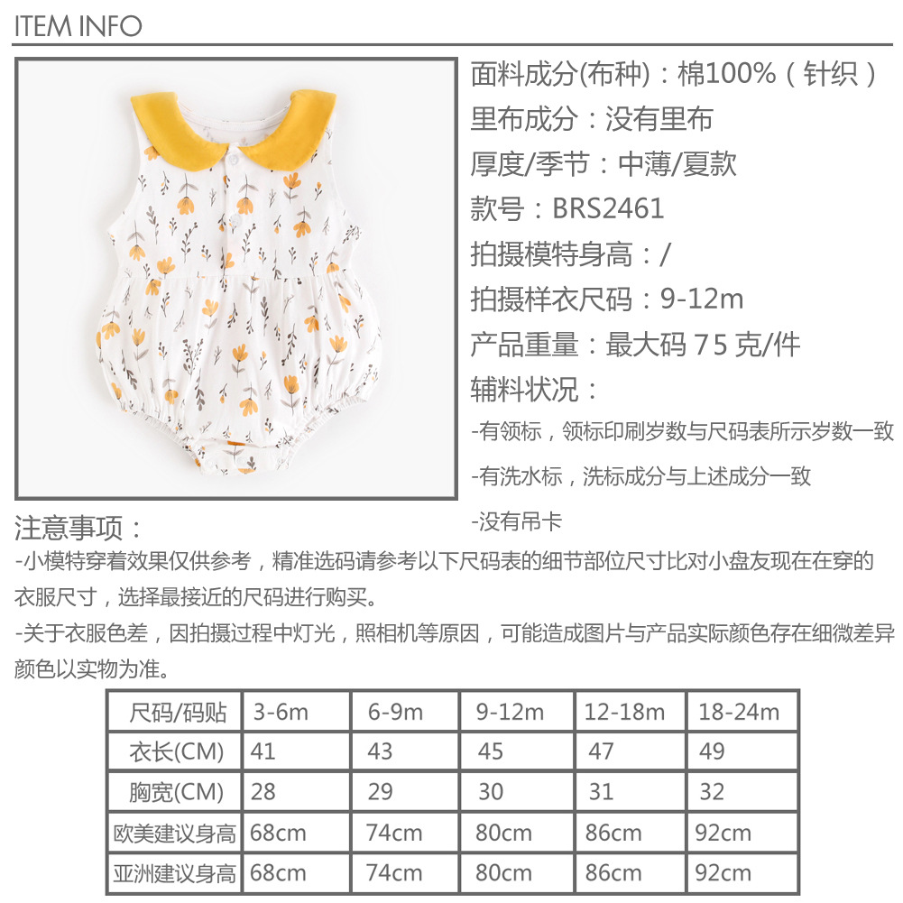 아기 점프 수트 여름 한국식 아기 의류 꽃 무늬 아기 점프 수트 1 세 등반 세트 6 개월 신생아스토어 가기