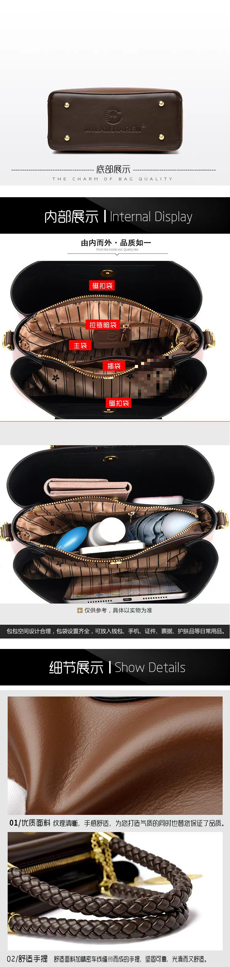 [홍콩 부티크] 가죽 여성용 가방 2024 고급 중년 어머니 가방 하이 엔드 어깨 크로스 바디 핸드백