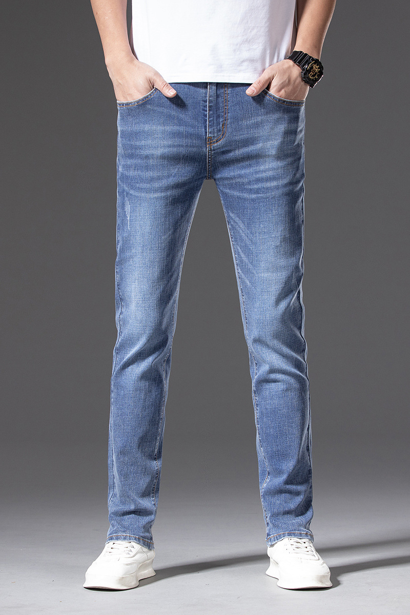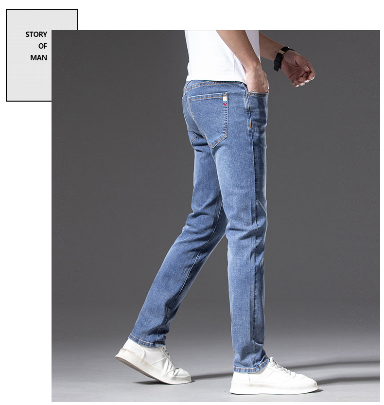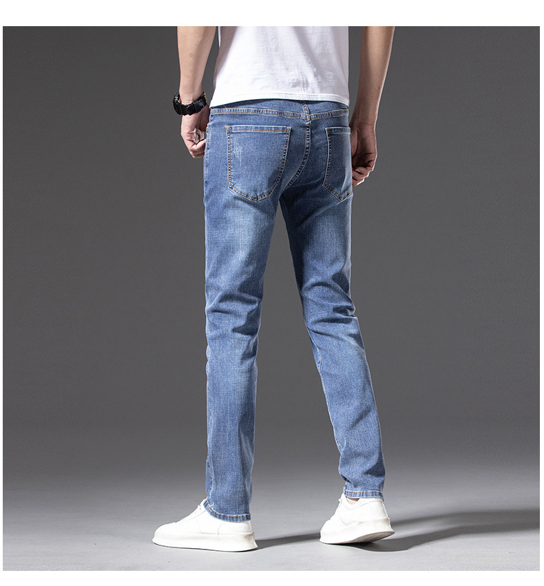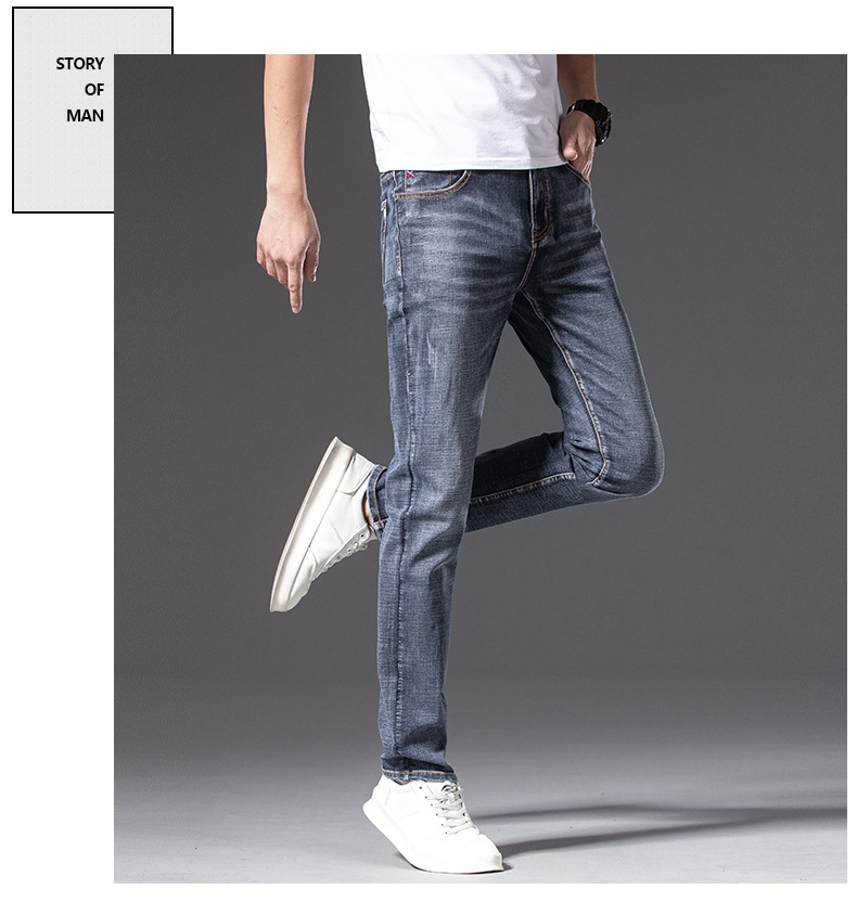 무료 배송 새로운 도착 세탁 하이 퀄리티 청바지 남성 스트레치 슬림 핏 슬리밍 스트레이트 루즈 캐주얼 올 매치