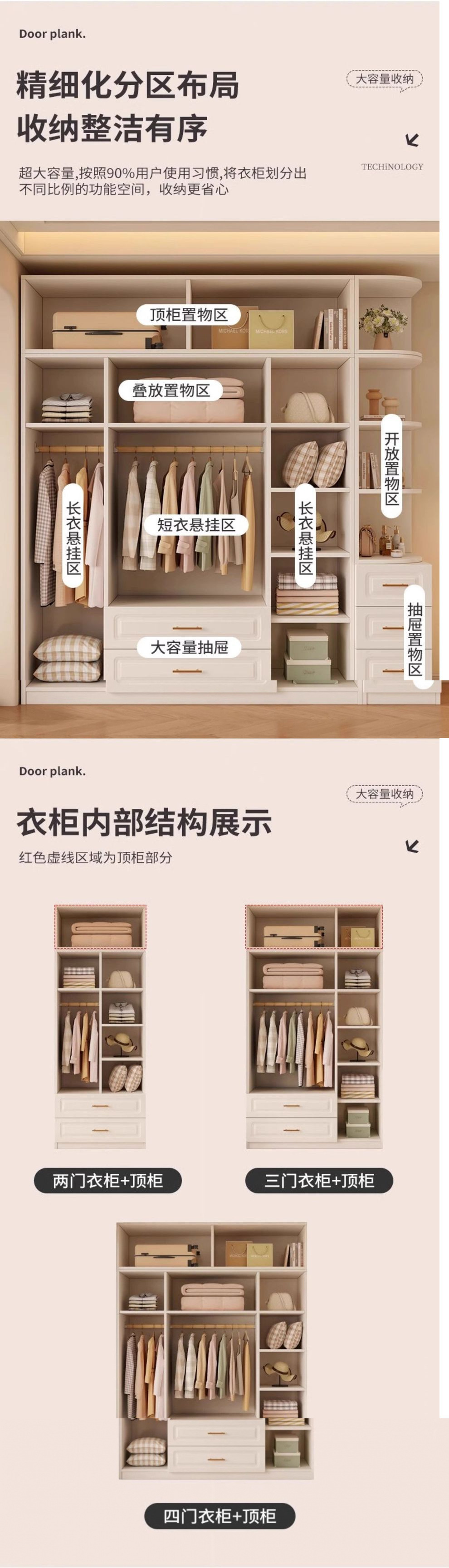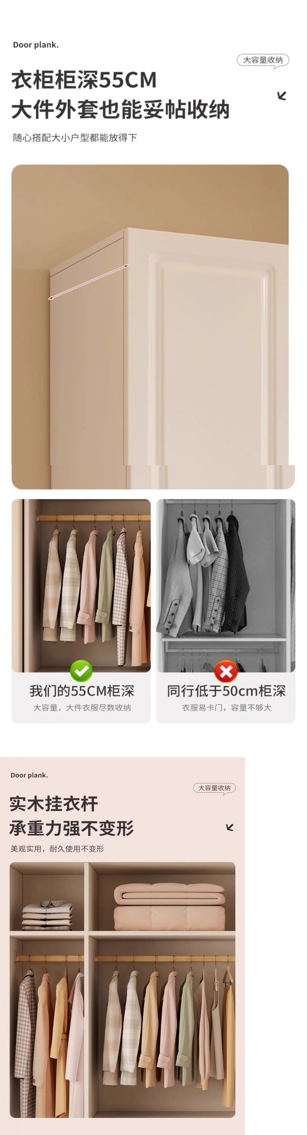 솔리드 우드 옷장 마스터 침실 4 도어 내구성 거실 대용량 임대 룸 옷장 새로운 두꺼운 강화 크림 스타일스토어 가기