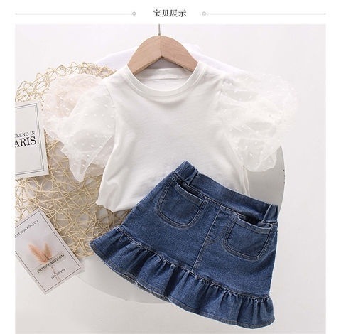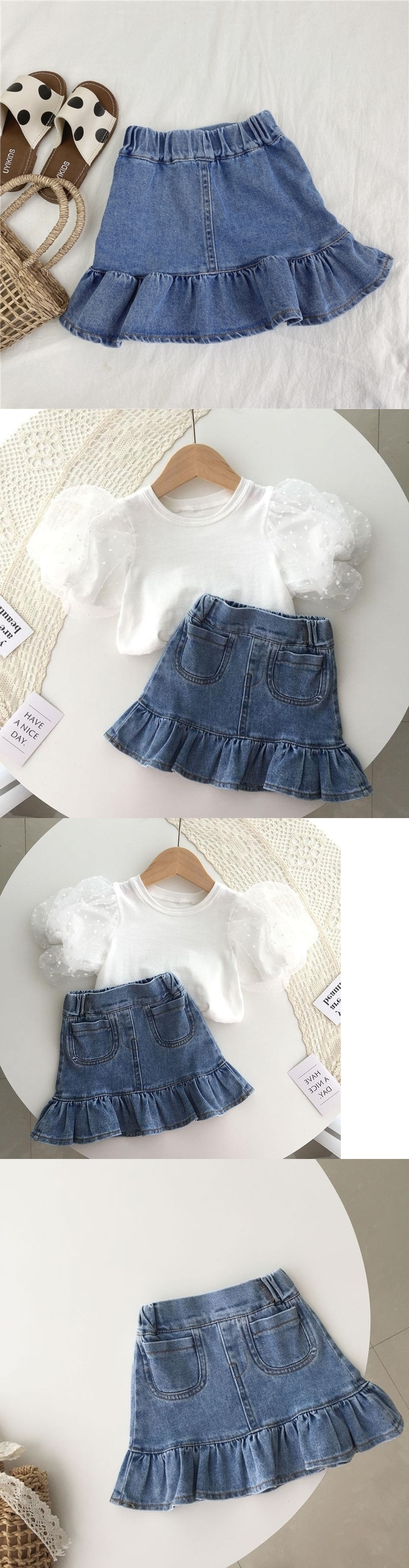 소녀 여름 데님 치마 2025 새로운 스타일 아기 소녀의 서양식 피쉬 스커트 어린이 러플 스커트 트렌디스토어 가기