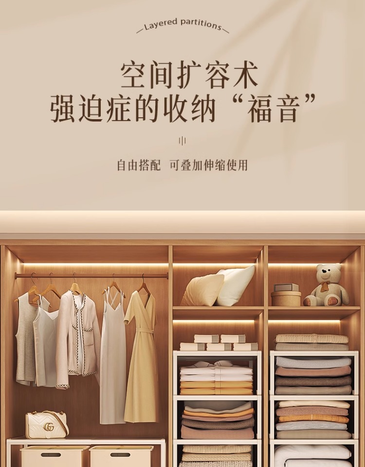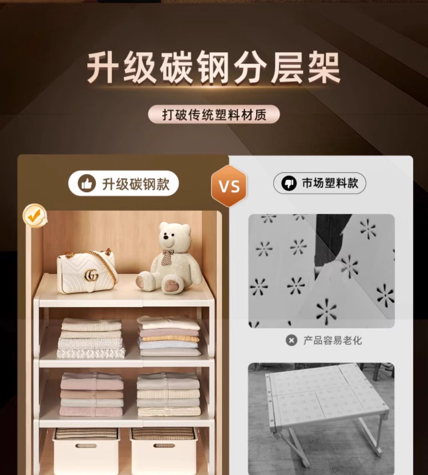 옷장 계층화 된 파티션 스토리지 랙 캐비닛 캐비닛 텔레스코픽 스토리지 랙 옷장 탄소강 계층화 된 랙