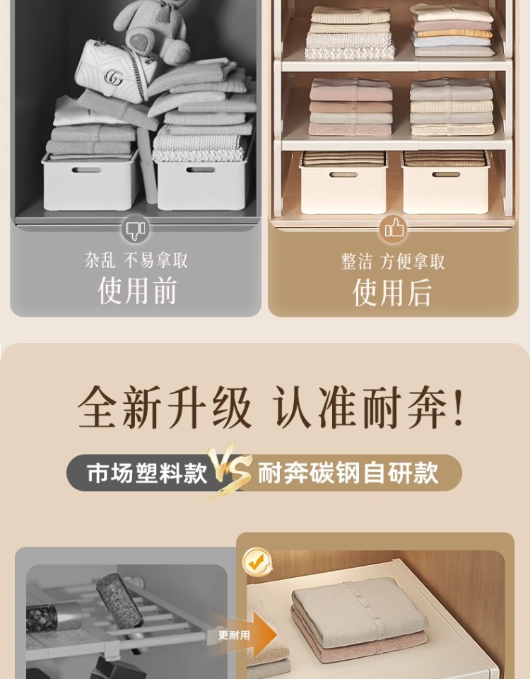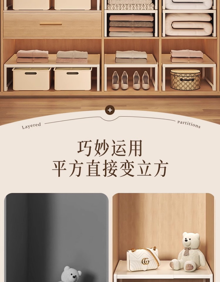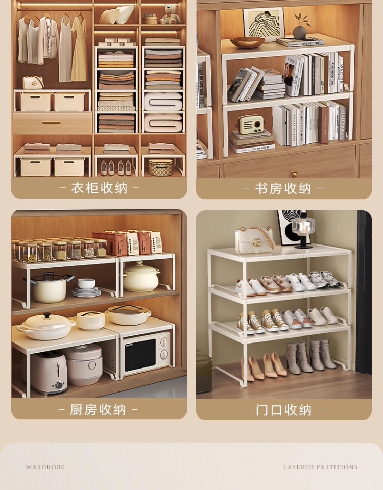 옷장 계층화 된 파티션 스토리지 랙 캐비닛 캐비닛 텔레스코픽 스토리지 랙 옷장 탄소강 계층화 된 랙스토어 가기