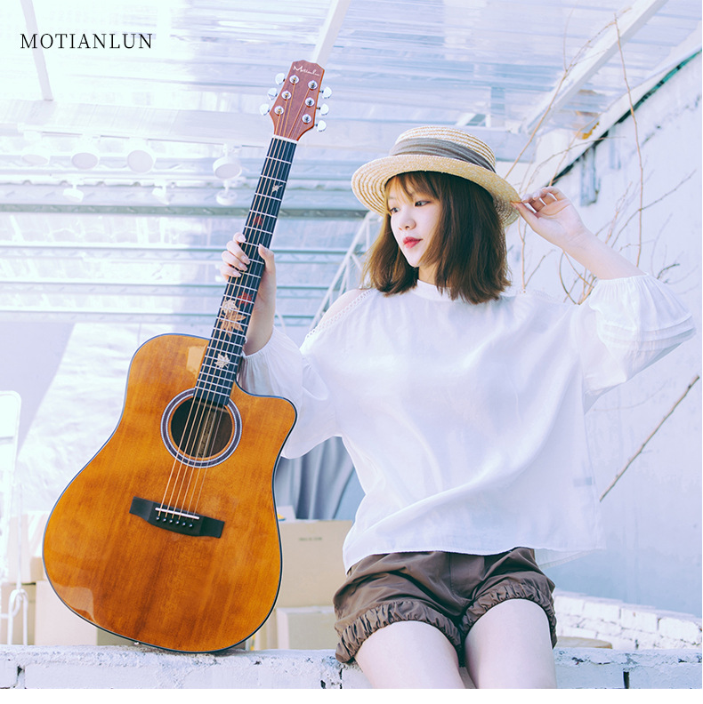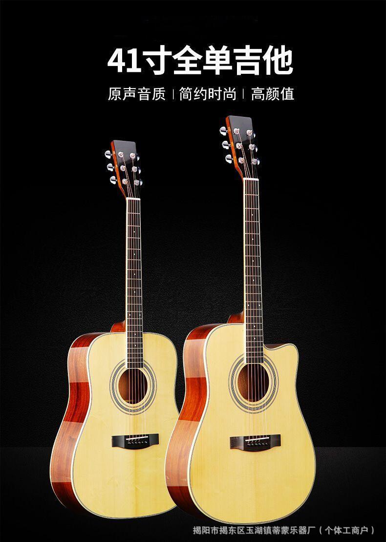 모든 싱글 기타 41 인치 포크 기타 40 인치 공장 도매 가문비 나무 복숭아 꽃 코어 밝은 광택 베니어 솔리드 우드 피아노스토어 가기