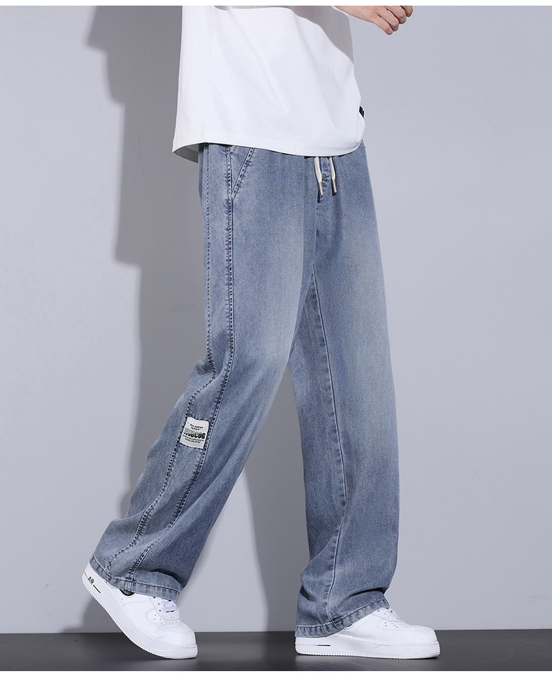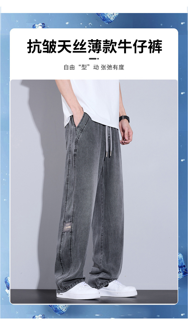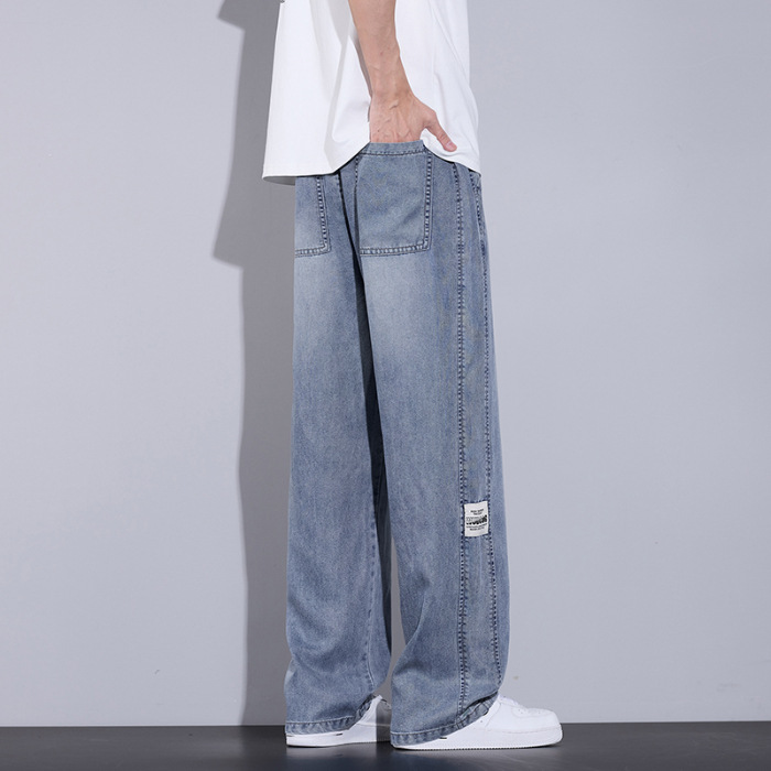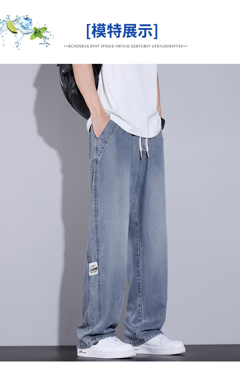 Lyocell Tencel 청바지 남자 2025 여름 얇은 느슨한 와이드 레그 바지 남자 한국식 올매치 통기성 바지