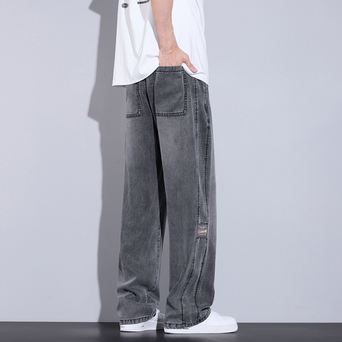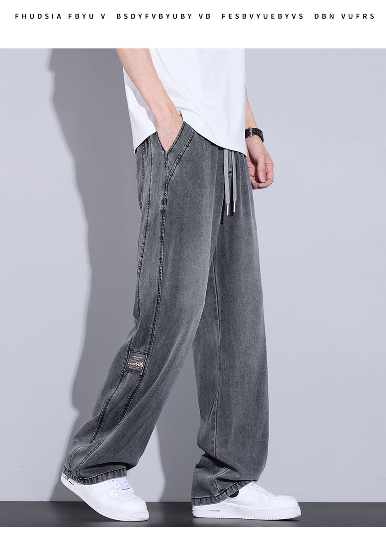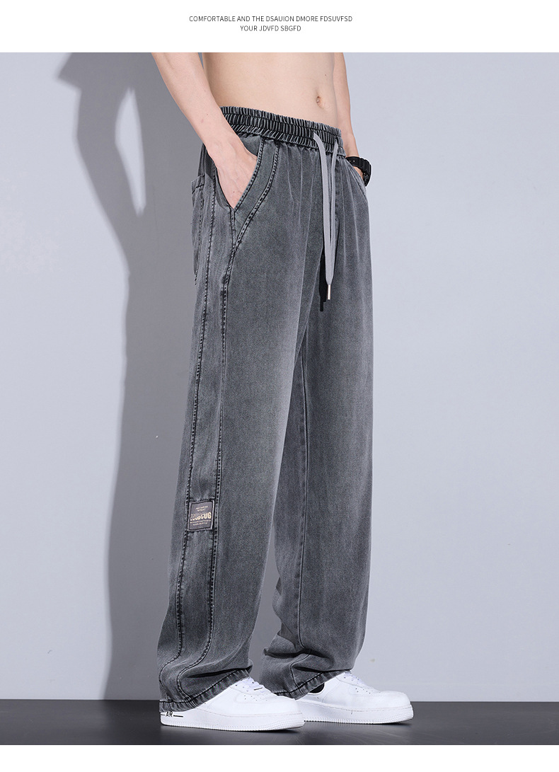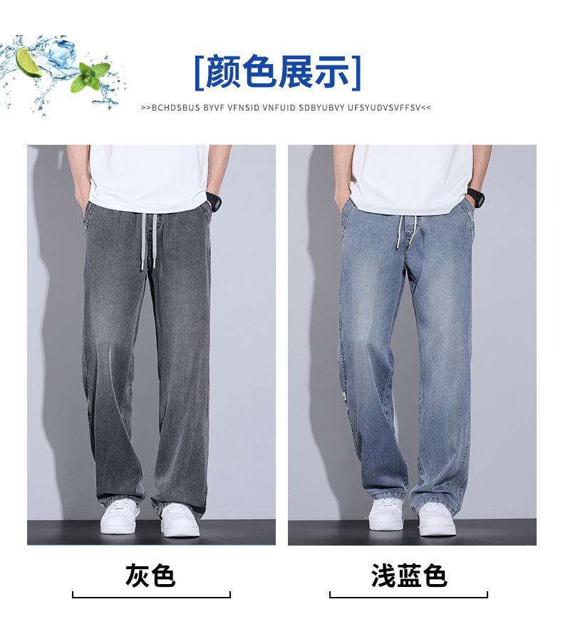 Lyocell Tencel 청바지 남자 2025 여름 얇은 느슨한 와이드 레그 바지 남자 한국식 올매치 통기성 바지