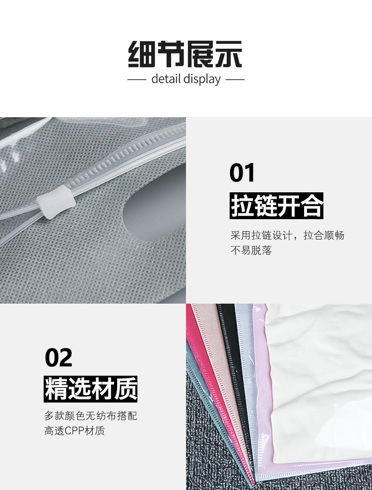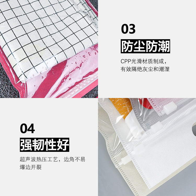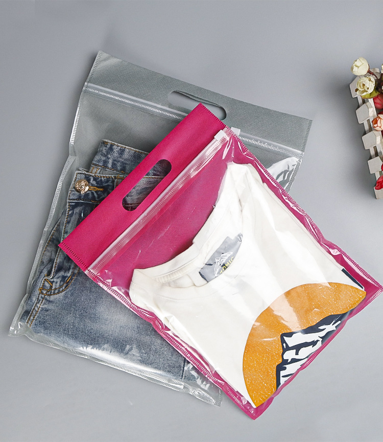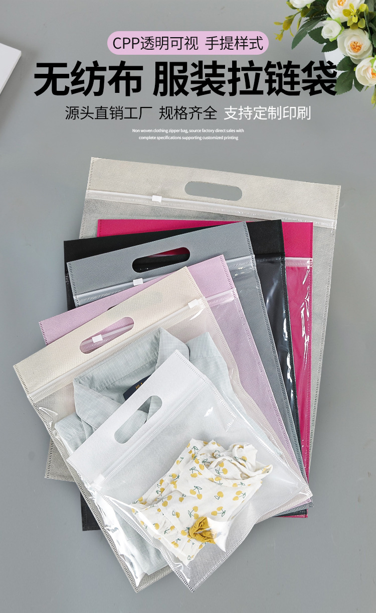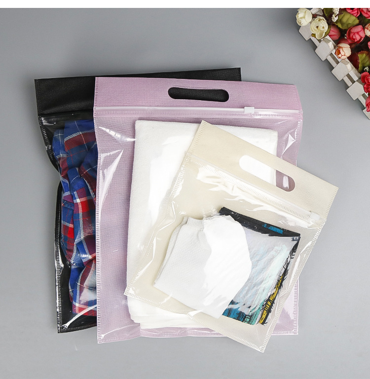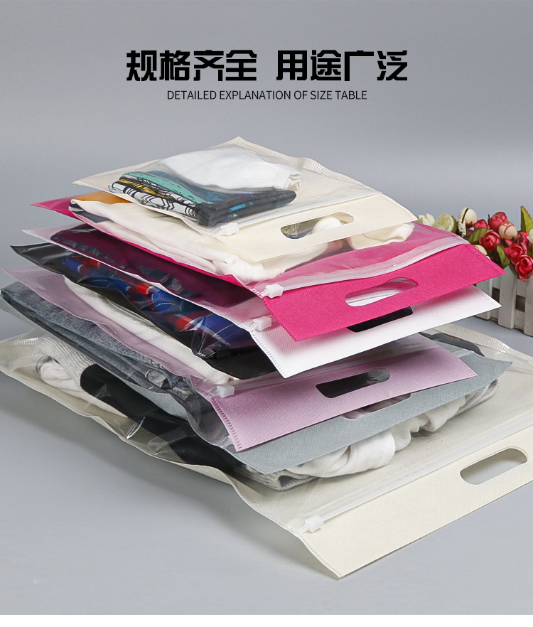 맞춤형 부직포 지퍼 가방 반투명 두꺼운 자체 밀봉 가방 플라스틱 포장 가방 휴대용 보관 의류 신발 양말