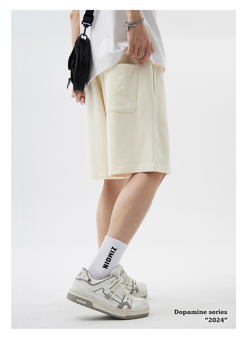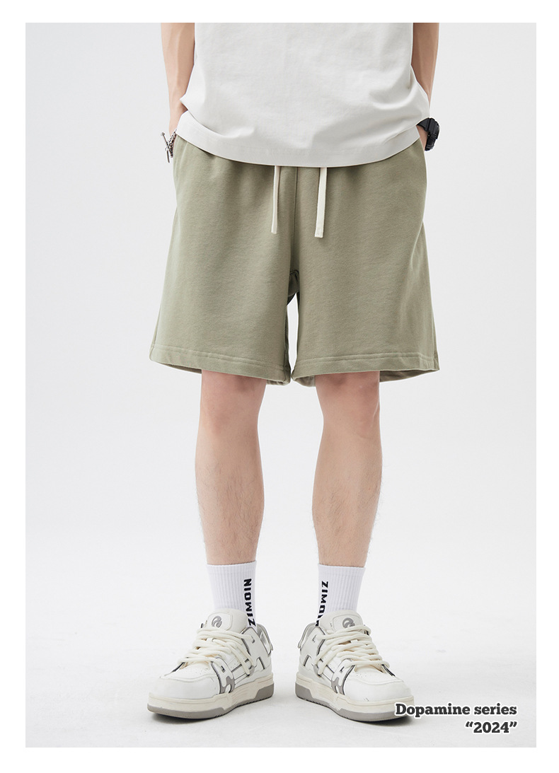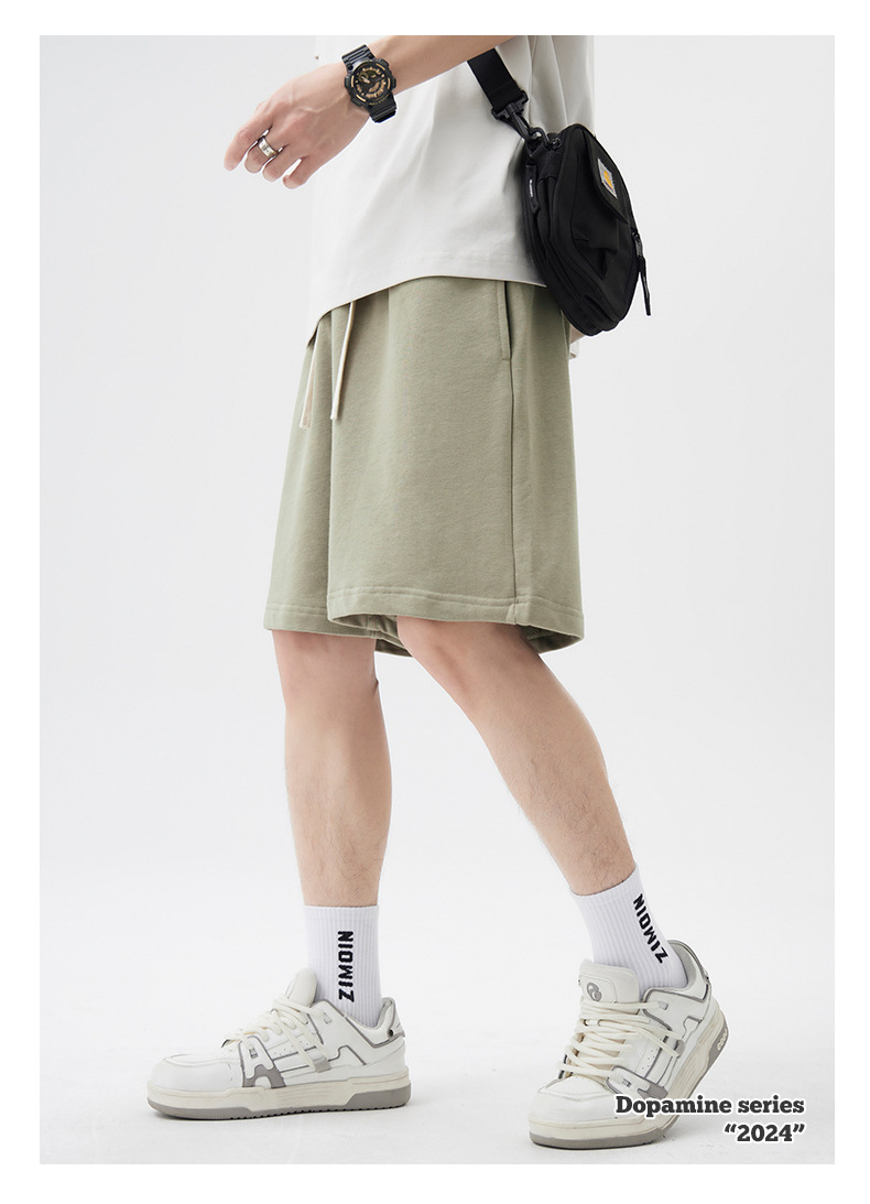 무료 배송 2025 느슨한 봄과 여름 새로운 무거운 와플 반바지 남성 미국 스타일 트렌디 브랜드 솔리드 컬러 캐주얼 반바지