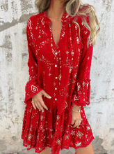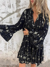 2025 유럽과 미국 국경 봄과 가을 아마존 단색 청동 패션 호른 레이스 소매 중공 플러스 사이즈 원피스스토어 가기
