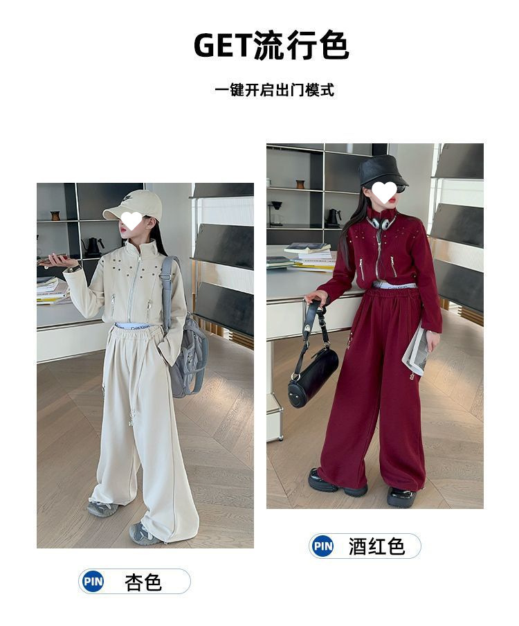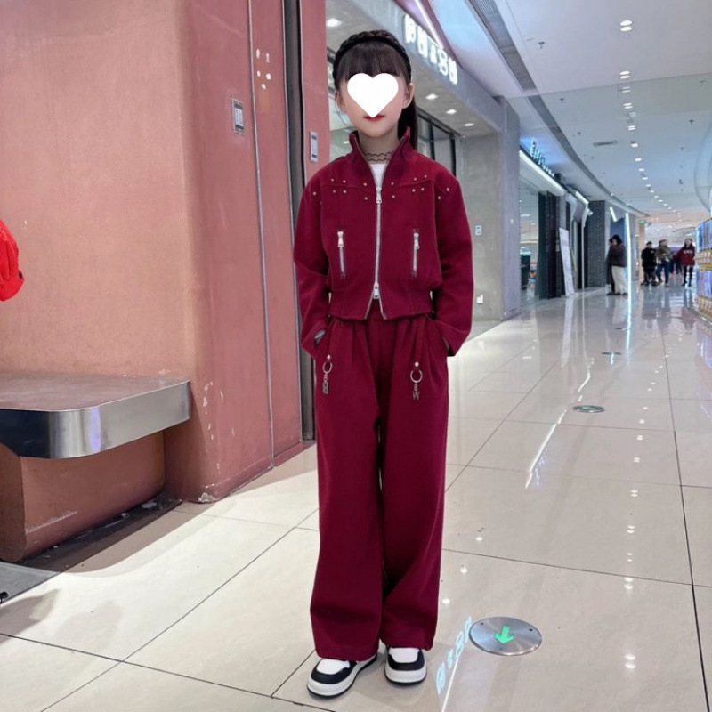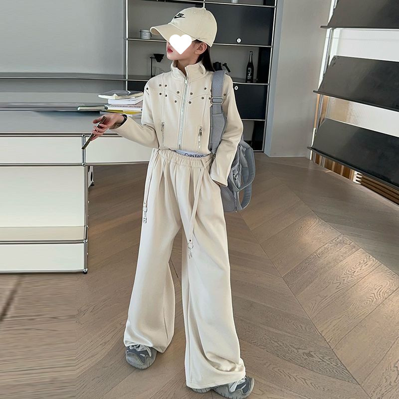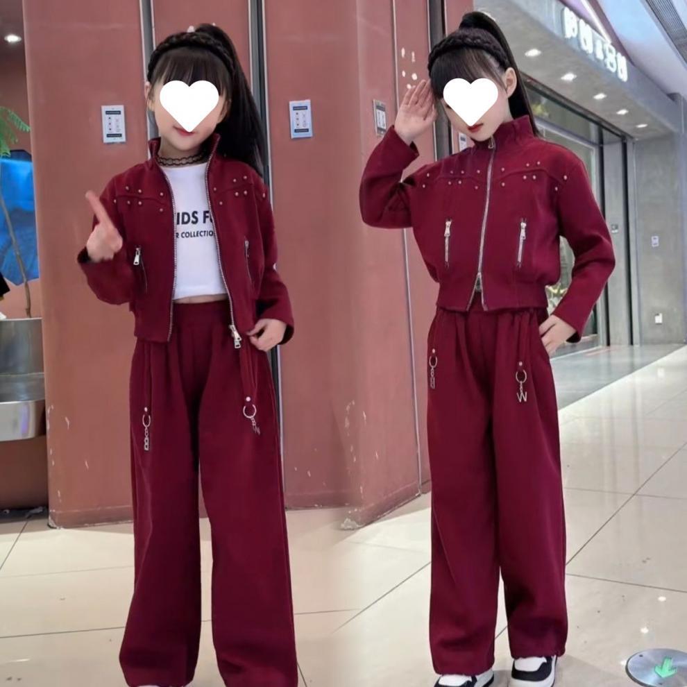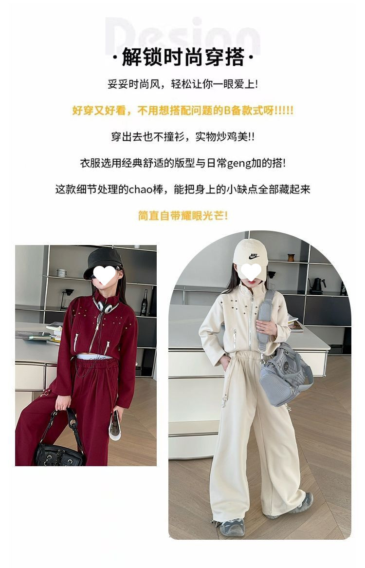 [4855 명 컬렉션] 여자 외국식 레저 세트 2025 봄과 가을 새로운 조커 칼라 조끼 어린이 수송