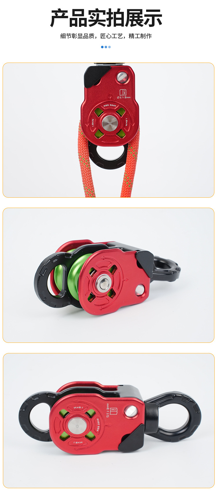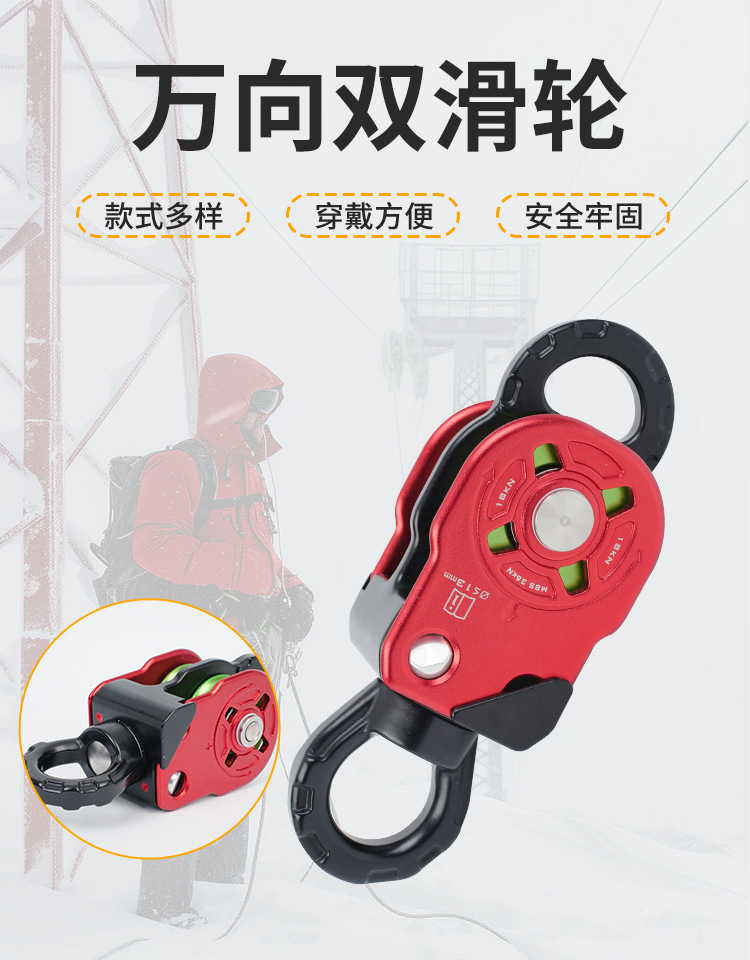 유니버설 더블 도르래 회전 링 로프 안티 매듭 유니버설 조인트 사이드 플레이트 풀리 등산 및 암벽 등반 장비 공중 작업