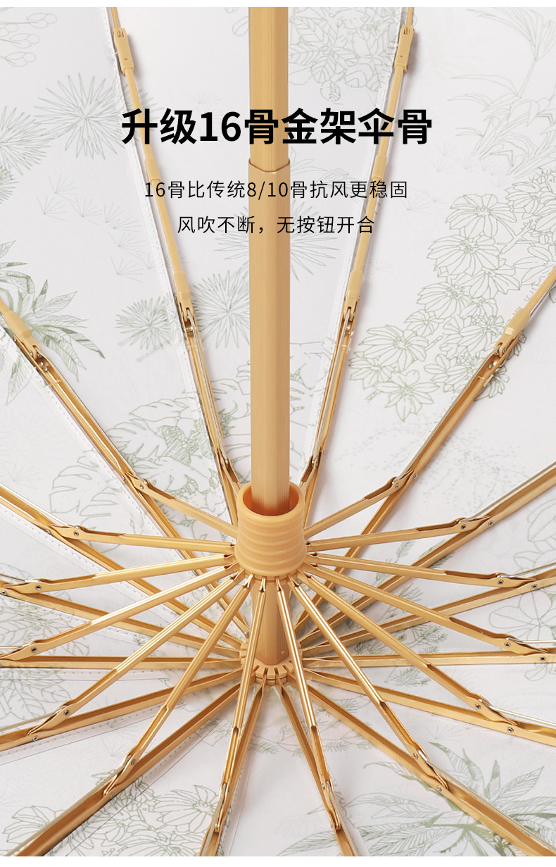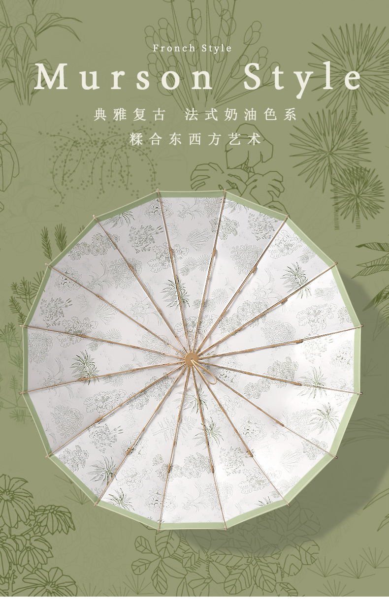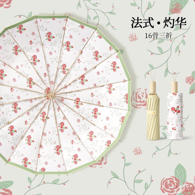 프랑스 레트로 맑고 비오는 이중 목적 태양 우산 16-뼈 3 배 햇빛 우산 새로운 복합 컬러 접착제 태양 보호 UV 보호