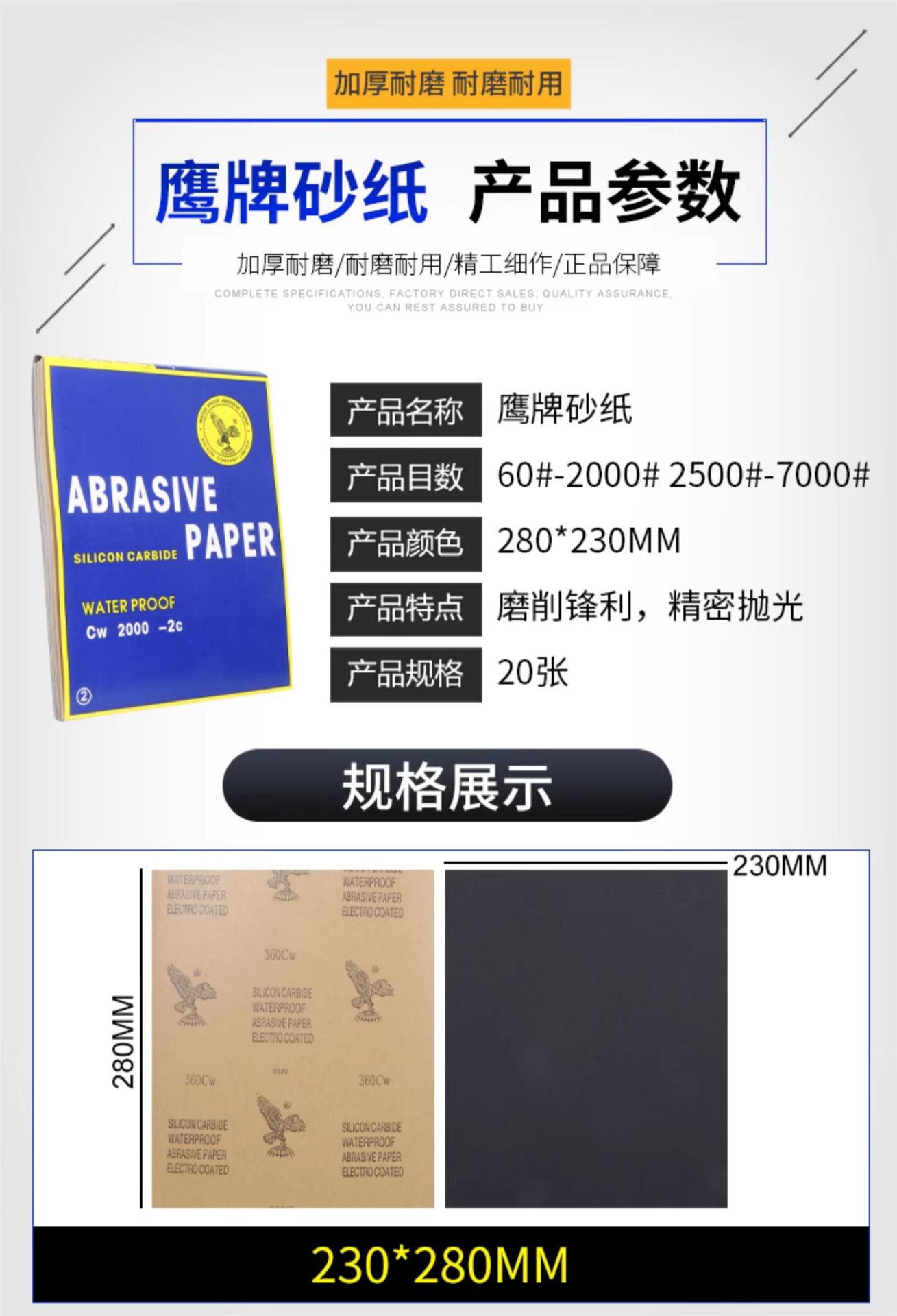 독수리 브랜드 사포 물 샌딩 종이 연마 거친 모래 고급 모래 2000 놀이 목공 건조 연삭 자동차 모래 종이스토어 가기