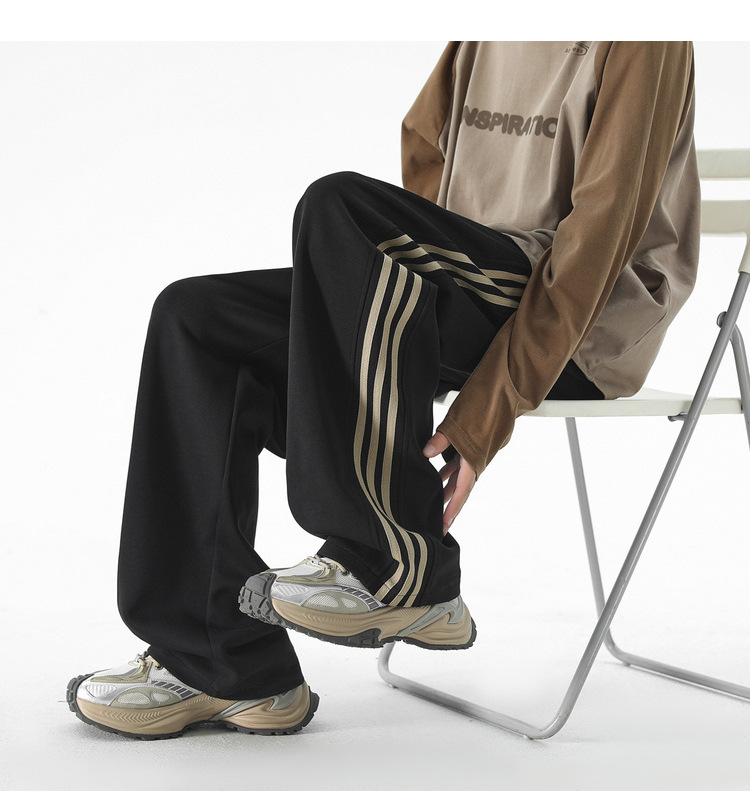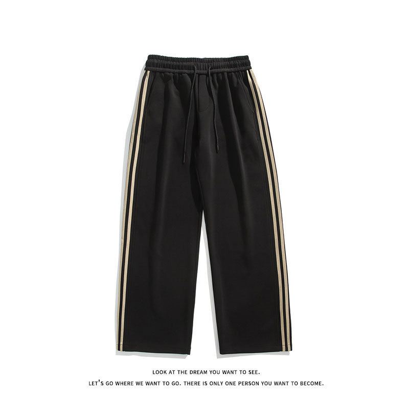 무료 배송 중국면 무거운 3 바 스트레이트 바지 소년 가을과 겨울 미국 복고풍 느슨한 기모 캐주얼