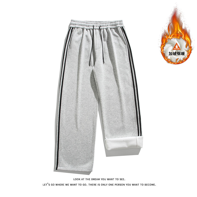 무료 배송 중국면 무거운 3 바 스트레이트 바지 소년 가을과 겨울 미국 복고풍 느슨한 기모 캐주얼스토어 가기