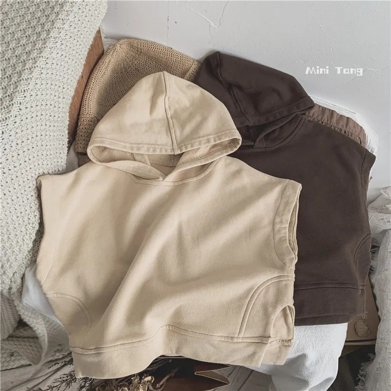 한국판 개성 ~ 어린이 후드 테리 소재 조끼 남녀 아기 슬릿 조끼는 봄과 가을 아동복 조끼입니다.스토어 가기
