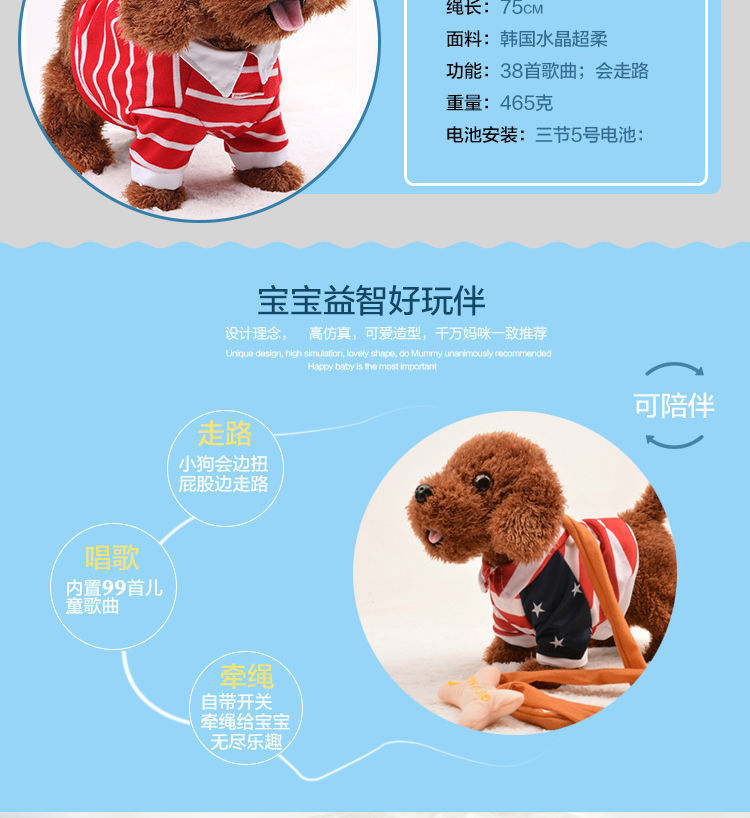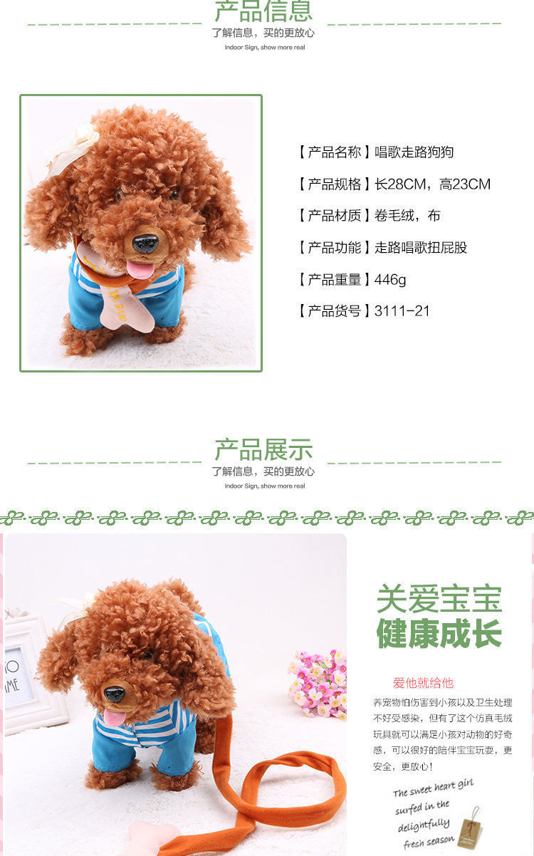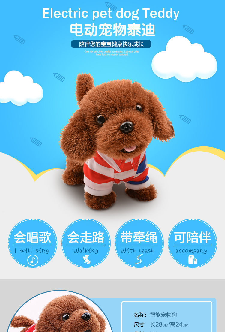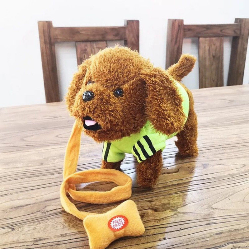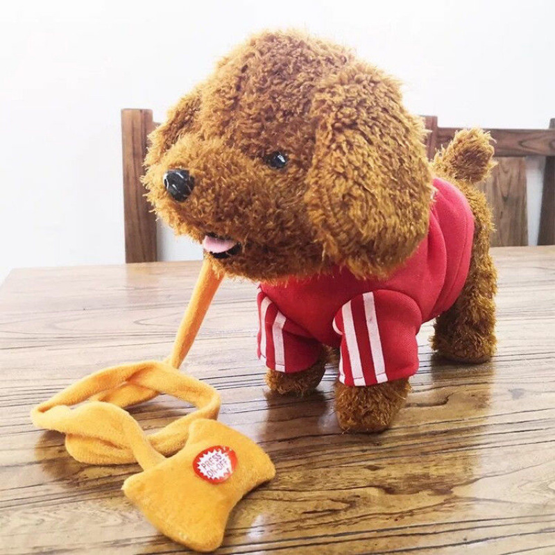 어린이 전기 봉제 장난감 개는 노래하고 춤을 출 수 있습니다 전자 기계 개 시뮬레이션 테디 가죽 끈 걷는 강아지스토어 가기