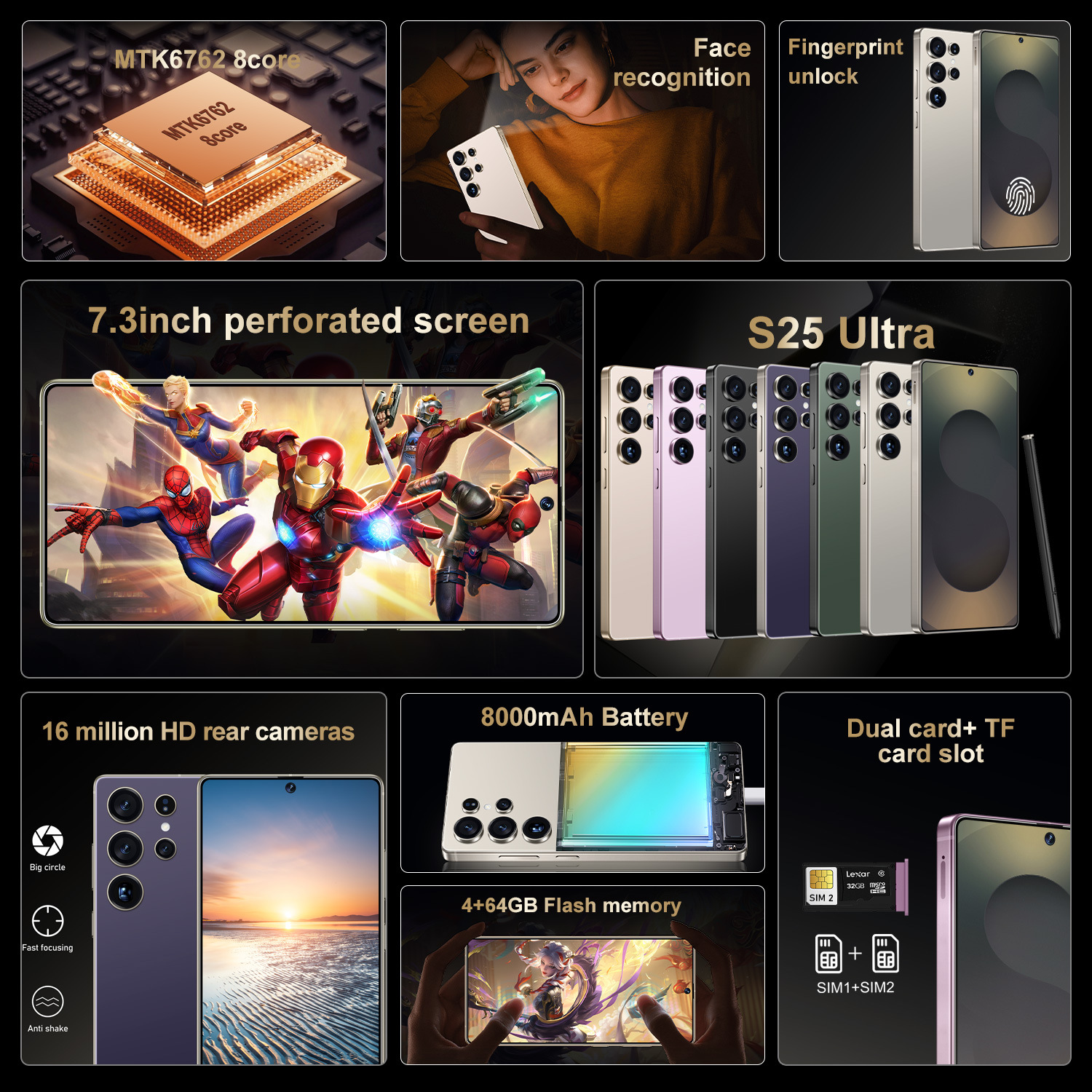국경 간 휴대 전화 S25Ultra 새로운 16GB 1TB 5G 슈퍼 클리어 7.3 대형 화면 안드로이드 13 공장 재고스토어 가기