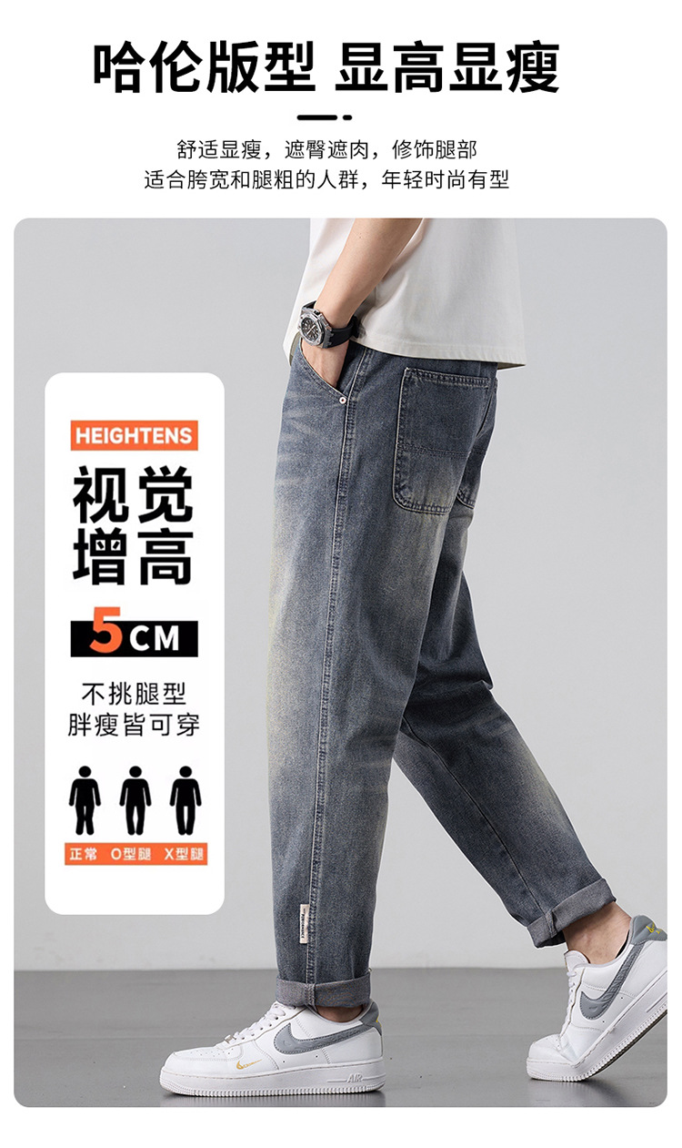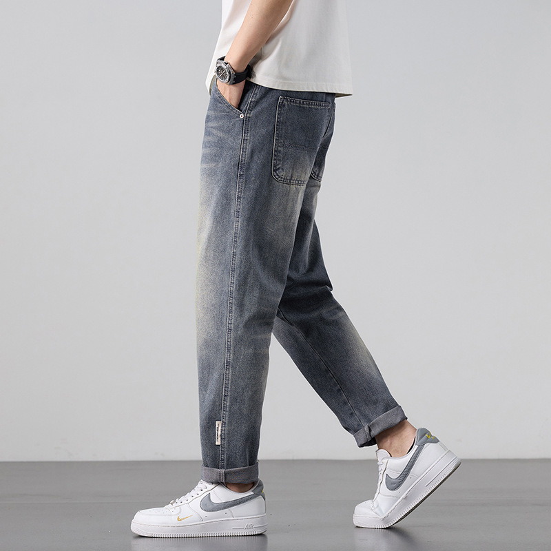 무료 배송 가을 겨울 청바지 남성 복고풍 유행 브랜드 느슨한 9 포인트 캐주얼 긴 바지 봄 2025스토어 가기