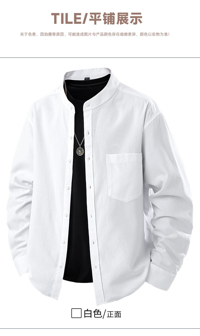 무료 배송 옥스포드 섬유 헨리 칼라 긴 소매 셔츠 남자의 2025 새로운 봄과 가을 면화 패션 브랜드 칼라 느슨한 캐주얼스토어 가기