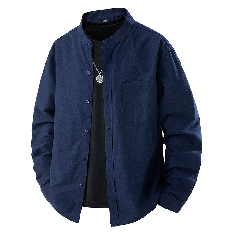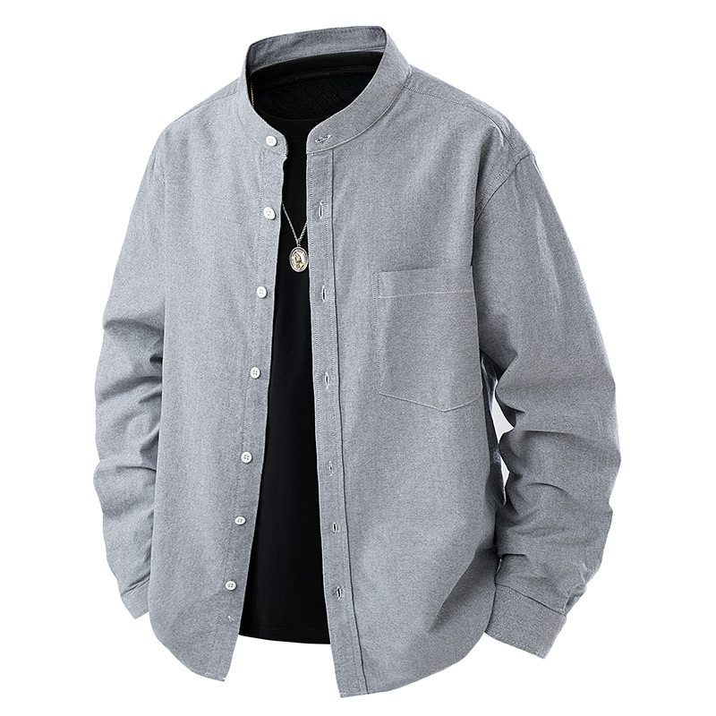 무료 배송 옥스포드 섬유 헨리 칼라 긴 소매 셔츠 남자의 2025 새로운 봄과 가을 면화 패션 브랜드 칼라 느슨한 캐주얼